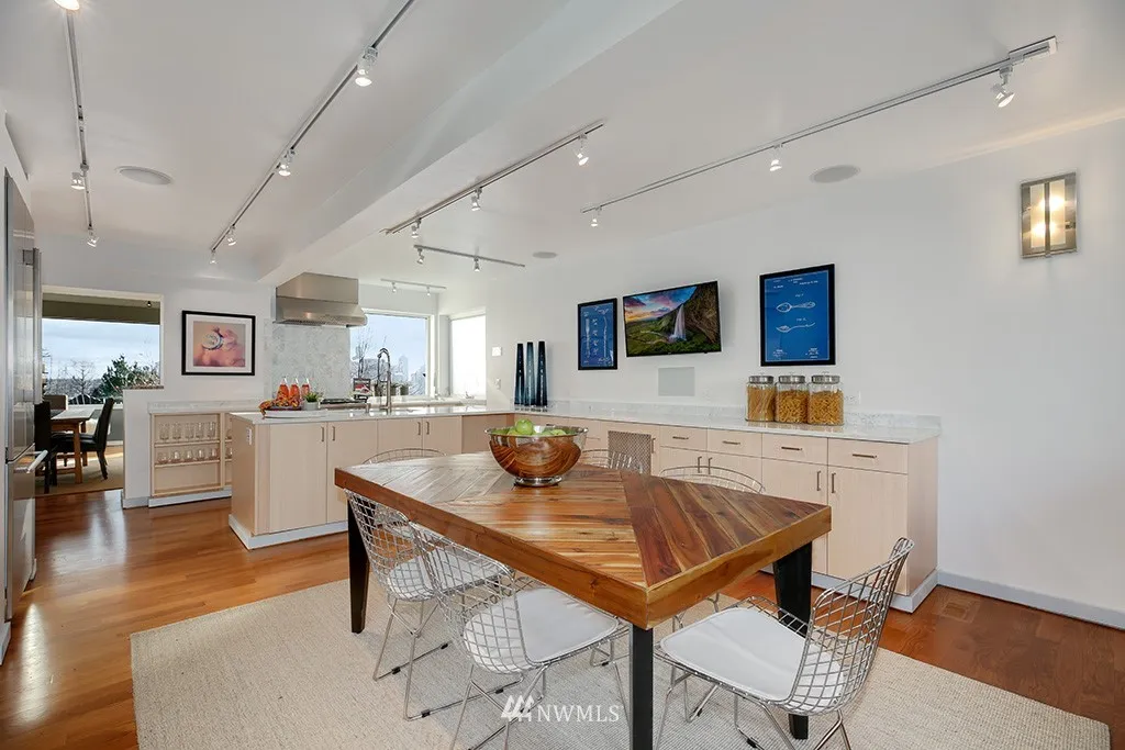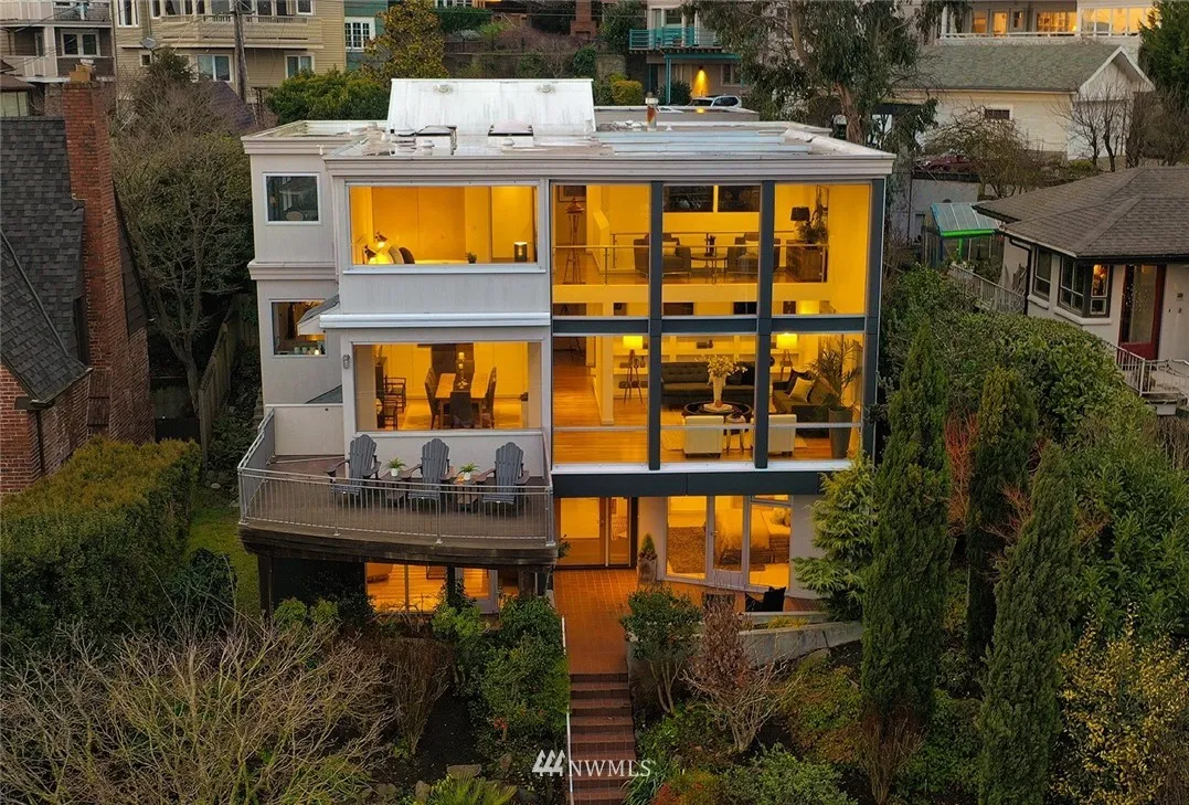 This masterfully remodeled modern home is perched high above iconic Bigelow Ave N in QA & enjoys stellar views of Seattle Skyline, Mountains & Puget Sound. Modern floor-to-ceiling windows, new epicurean kitchen w/lux finishes, state-of-the-art cinema, solar heated swimming pool & bath house, lush mature landscaping, wine cellar, 3 car garage + 5 more off street, are captivating features of the aptly named “Song House”. Commanding one of the largest lots in QA, the possibilities are endless!