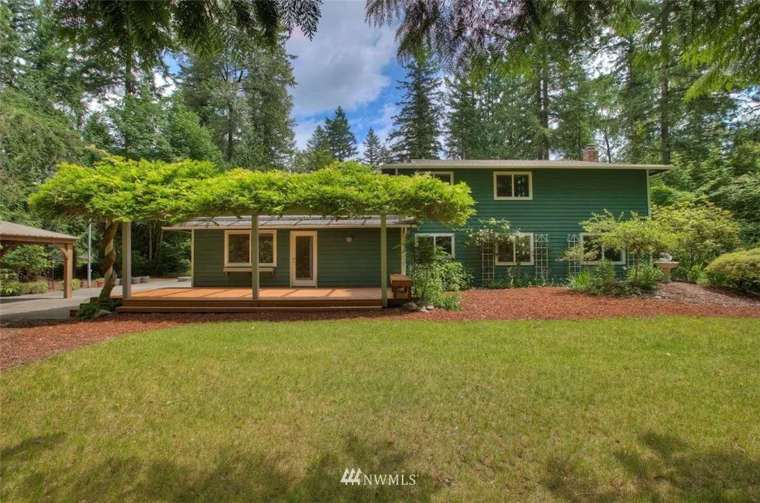 Spaciously-designed residence sited on over 1.5 acre offers delightful gardens, Plenty of room for RV. Two level floor plan enjoys generous living areas, private dining, expansive eat-in kitchen w/tons of cbntry, family rm w/second frplc. Four bdrms incl master w/bath; full guest bath, half bath on main. Throw open the doors off the family room to oversized entertainment deck that all your family as trends will enjoy, gazebo, fruit trees, plenty of room to roam, extra detached flex/shop room!