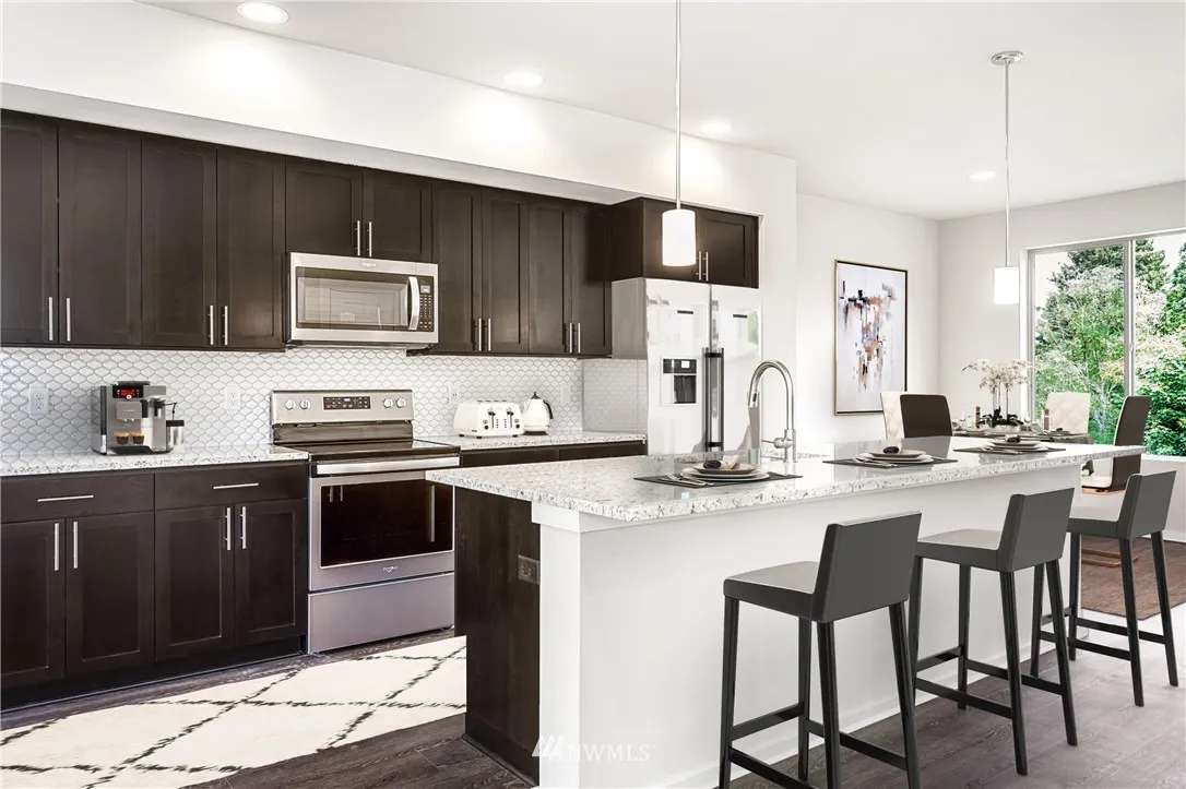 Materra at Greenbridge by Conner Homes is a master-planned community close to parks, schools, downtown Seattle & SEATAC. Large contemporary 3-story townhome with A/C & attached garage, downstairs bed w/full bath; Great Rm concept on Main has beautiful Kitchen w/pantry, granite c/tops, soft-close cabs. & drawers; large Dining and Living Areas. Spacious Master has large bath w/walk-in closet & 2 more beds, full bath & laundry upstairs. Landscaped yards.