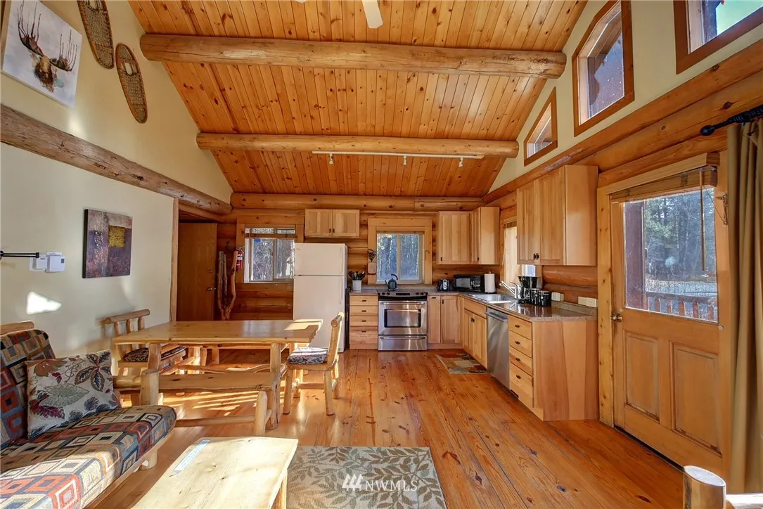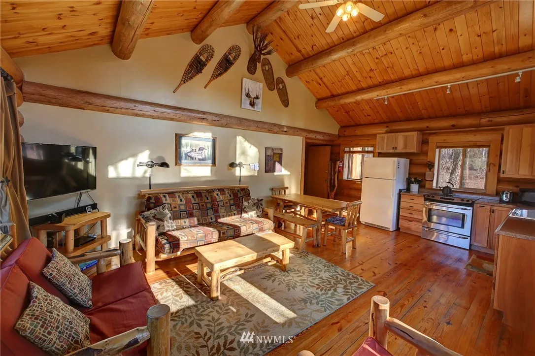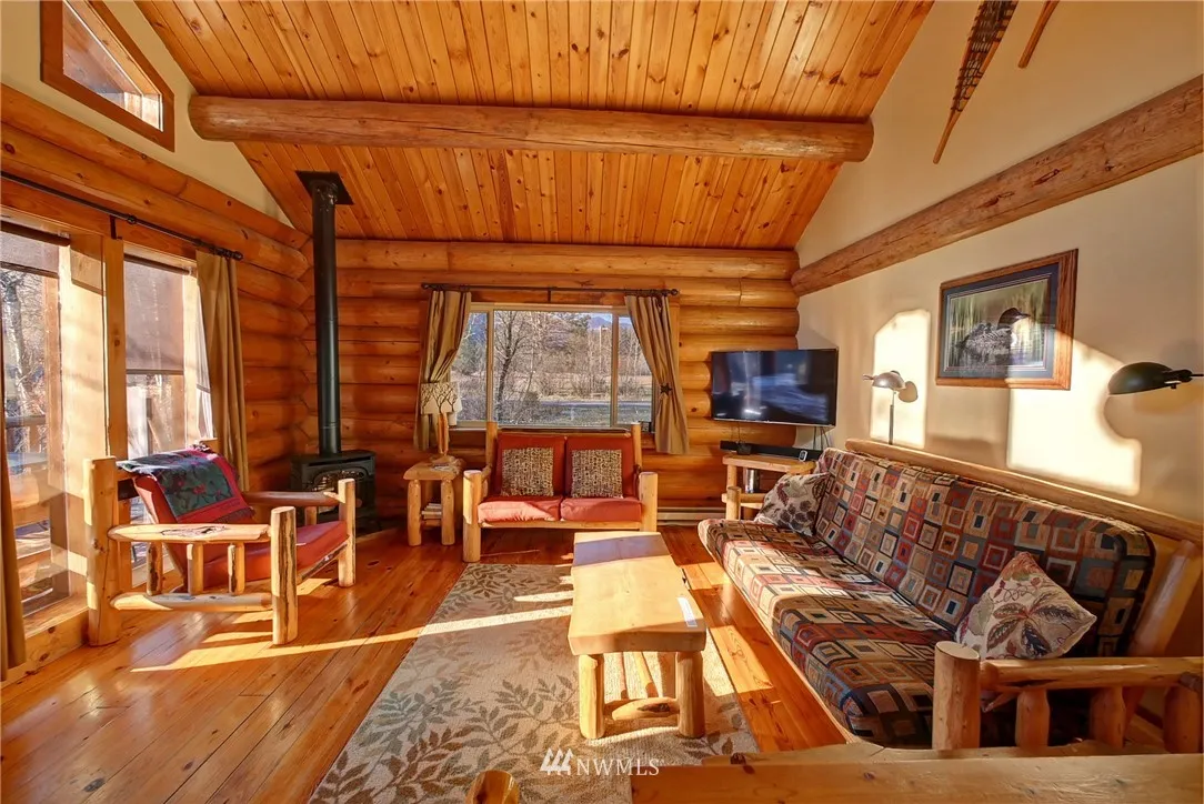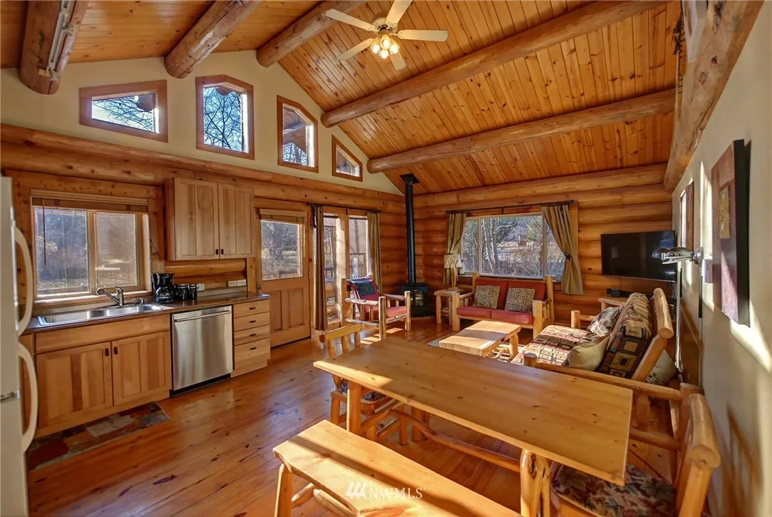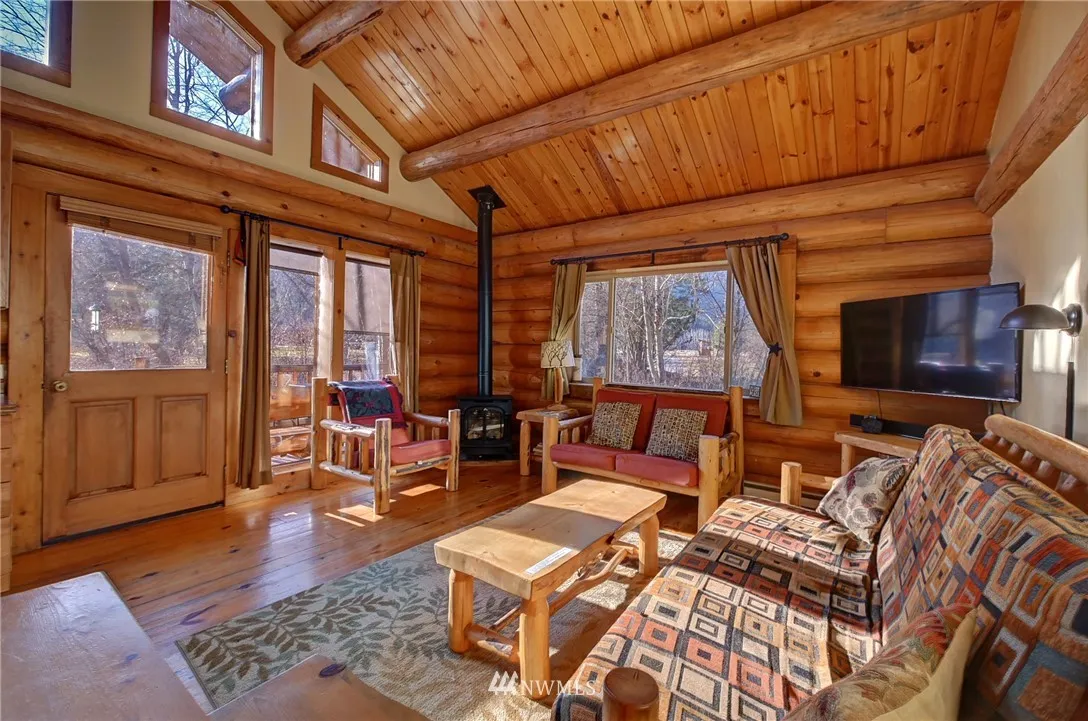 Nightly Rental Wolf Ridge Resort custom log townhouse, hotel-style with two connecting units; Main floor w/fully equipped newly remodeled kitchen, dishwasher, TV, private BR & BA, log beam cathedral ceiling living room w/ private deck. Upstairs unit includes BD, 3/4 BA, studio style kitchen & balcony. Units come turnkey & furnished w/ hand-crafted log furniture. The property includes 60 ac common area w/ serene Riverfront, MVSTA trail runs through the property, newly re-opened hot tub & pool.
