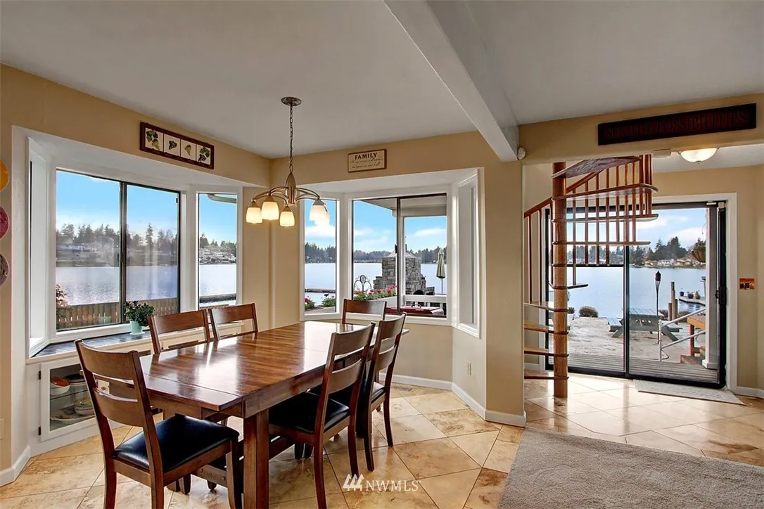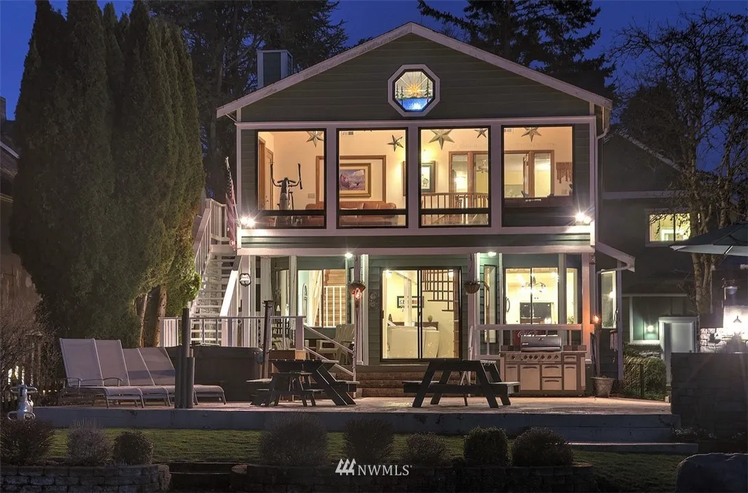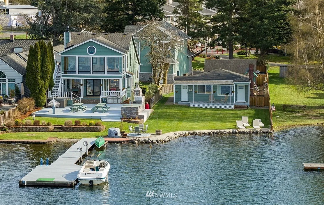 Choose a special lifestyle living on Lk Meridian, 1 of 4 waterski lakes in King Co. Main house rebuilt in 1983 w/kitchen remodeled 5 yrs ago. 3 bdrms/2 baths w/1 bdrm on the main. 2005 Garage includes additional living space, spaces for 4 cars & a large shop. One of best lots w/views & entertaining area w/outdoor pizza oven.Dock w/hydraulic speed boat lift & a lift for 2 jet skis.