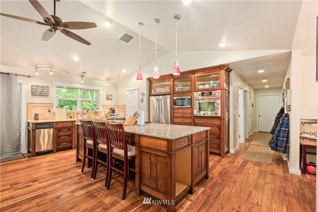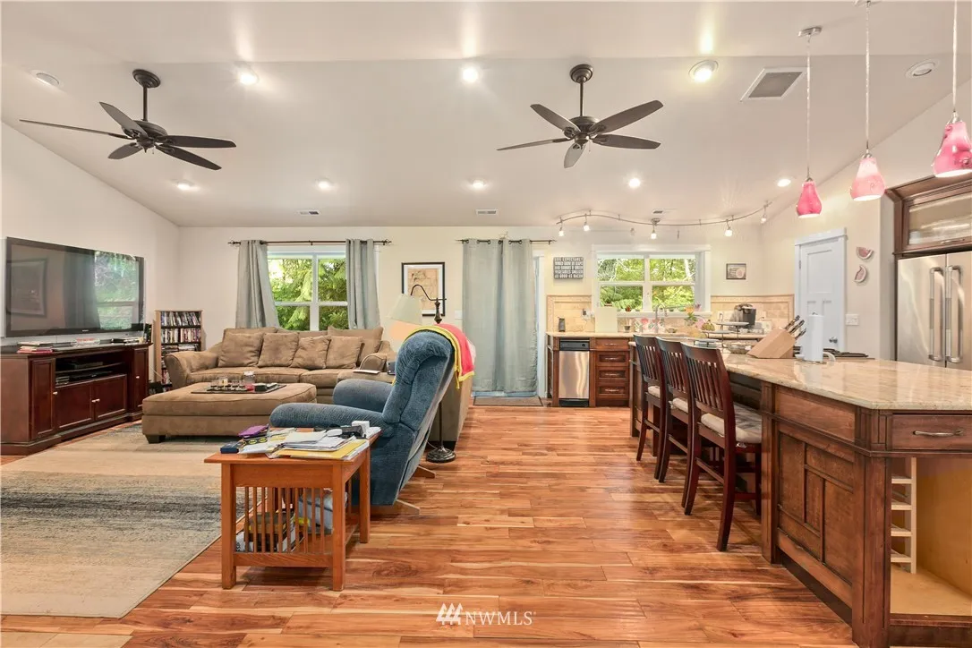 Beautiful rambler on over and acre and a half with lots of privacy! Over 1600 square feet of garage/shop space. Custom hand-crafted wood cabinetry, and hardwood floors throughout. Open floor plan, perfect for entertaining! This home has lots to offer, including, two bedrooms and an office/den, a full bathroom and one ¾ bathrooms. Too many special features to list. This is a must see home!