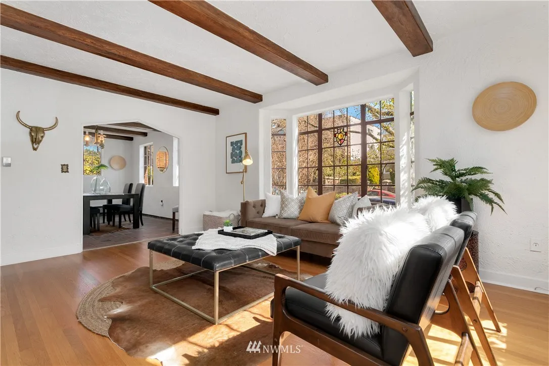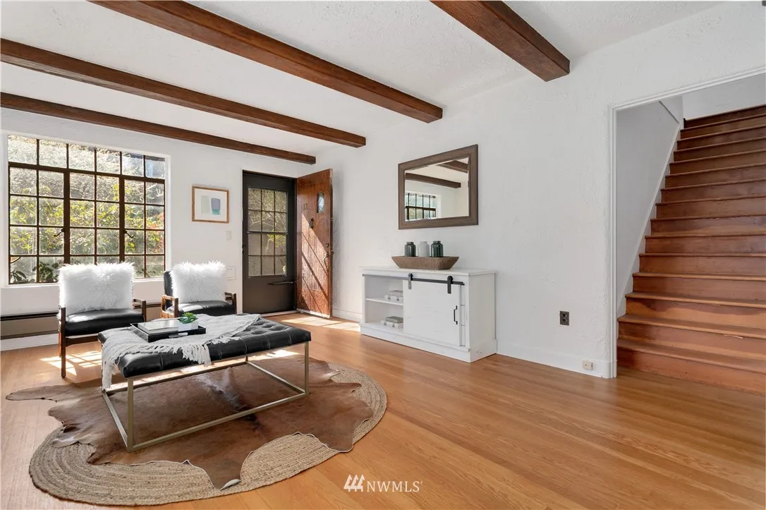 Here is a rare opportunity to own a two-story, end unit condo at Tudor Manor – a small community in the heart of Capitol Hill. Loaded with vintage character, you will appreciate exposed beams, wood floors, and leaded windows with stained glass accents. French doors in the upstairs master bedroom open to a balcony overlooking the lush courtyard. Situated mere blocks from light rail, you’ll enjoy easy access to the shops and restaurants that make this one of Seattle’s favorite neighborhoods.