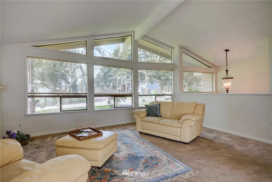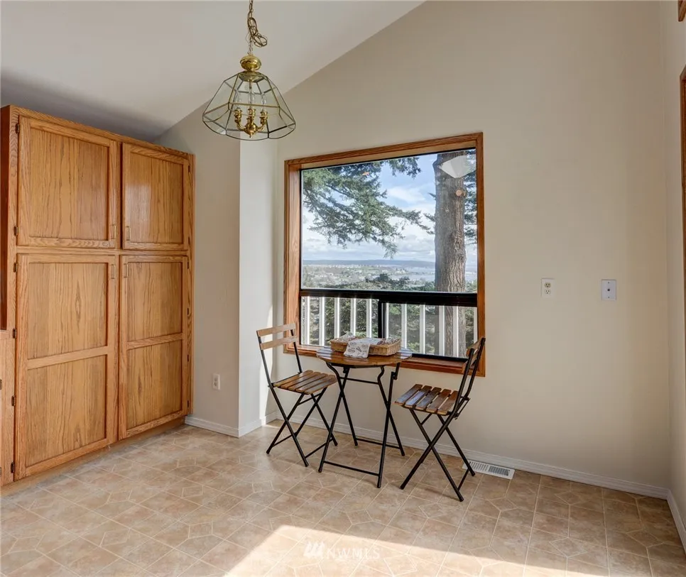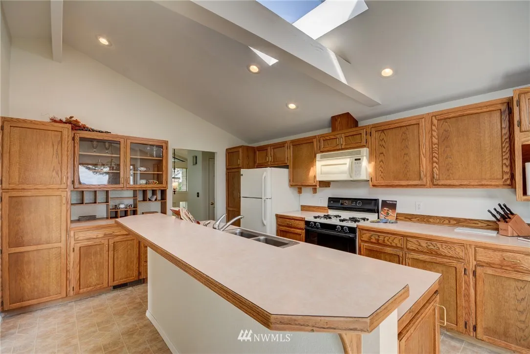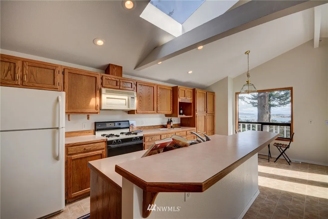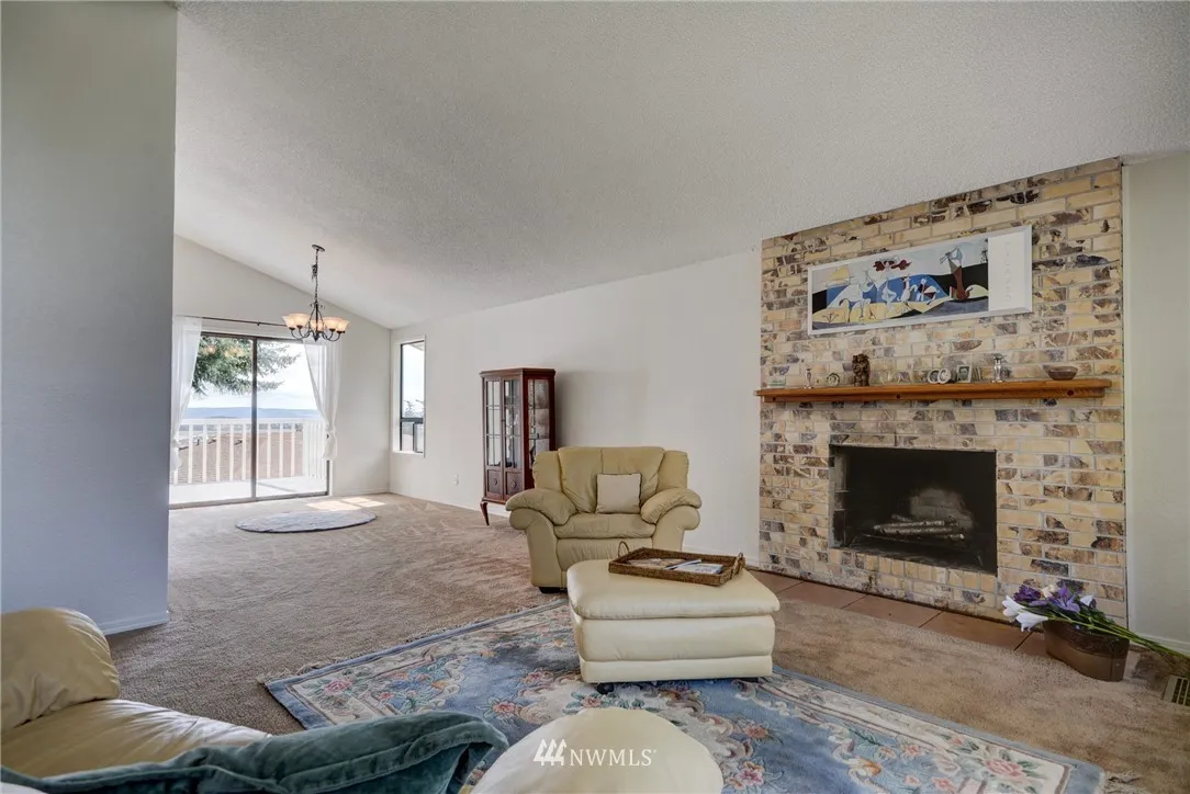 Bay & mountain view! Big 4 bedroom / 2.5 bath sparkling home! Gas! UPDATED! Light, open, vaulted! Skylight kitchen, tons of cabinets, computer / desk, breakfast area to huge deck*; formal living, dining 2 fireplaces, recreation room to patio & fire pit! 0.4 acre lovely landscaped privacy, fenced, garden space, 2 car garage, shop, R.V. spot. Close to town, shops, base! Experience Whidbey! Walking distance to schools. New gas furnace & tankless hot water, roof 2004.