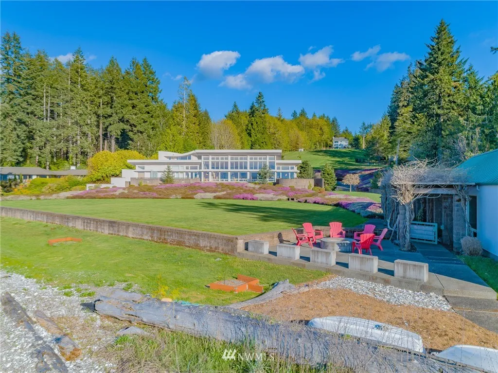 Enjoy elegant living surrounded by extraordinary beauty and amazing sunsets with unobstructed vistas of Hood Canal waters & Olympic Mtns. 300 Ft of a No Bank Waterfront sandy beach abundant with sunlit fun, oysters, clams, crab & salmon. A contemporary architectural design for Northwest lifestyle with comforts that rival the best NW Resorts. 2tax parcels, 5.46ac of gated fenced privacy. Drive through 4 car garage. Boat House/rails, close to private airport, golfing, marina & ferry to Seattle.