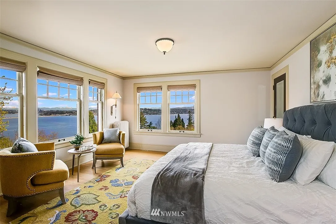 Impressive Federal style home in a coveted pocket of Mt. Baker with sweeping views of Lake Washington and the Cascades in beautiful park-like setting. Flooded with natural light and views from nearly all rooms, this exceptional home is a timeless classic updated to perfection. Elegant formals, remodeled kitchen & breakfast room, four corner bedrooms & a terrace to enjoy spectacular lake views. Fully finished daylight lower level has amazing flexible living spaces. Driveway to 2 car garage.