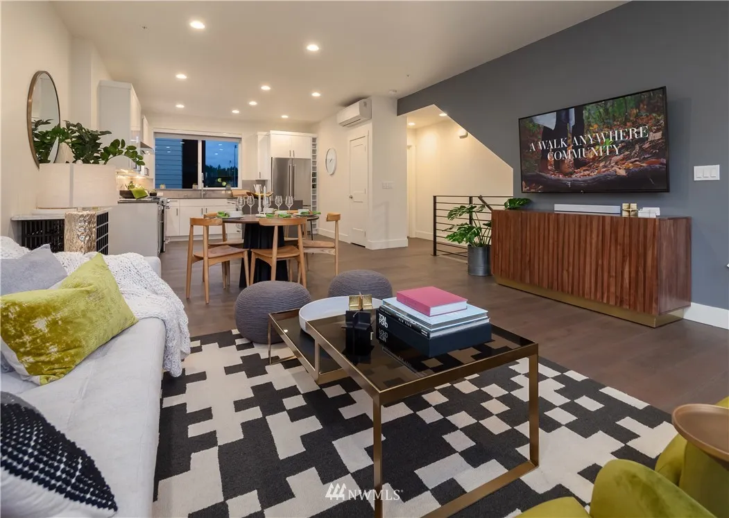 THE LANDING, A Walk Anywhere Community just steps to shopping, eateries, parks & trails! Upgraded features come standard: Quartz counters, under-cabinet lighting, KitchenAid, A/C, BIG real 2 car garage (please compare), wrought-iron railings, en suite bathroom in 2nd bedroom, sleek hardwoods & private covered deck. This 3 bedroom, EAST facing "Wayfarer" features floor to ceiling windows for maximum natural light. Wide open Great Room w/gorgeous center island. High Walk Score + Top Rated Schools.