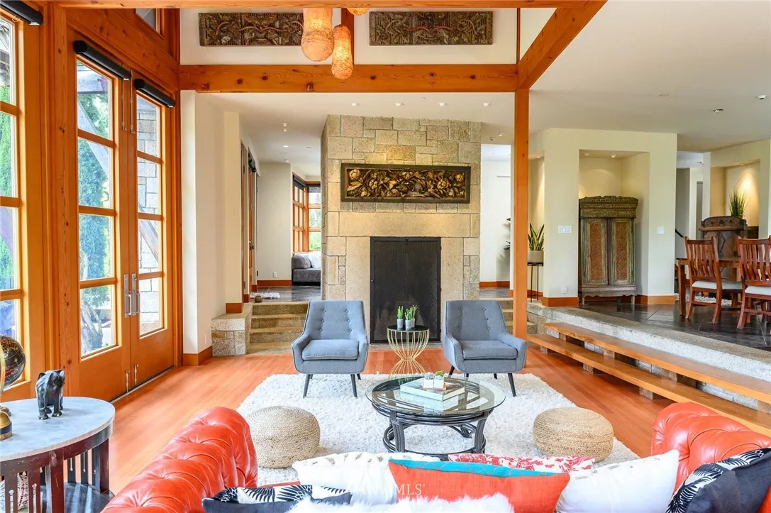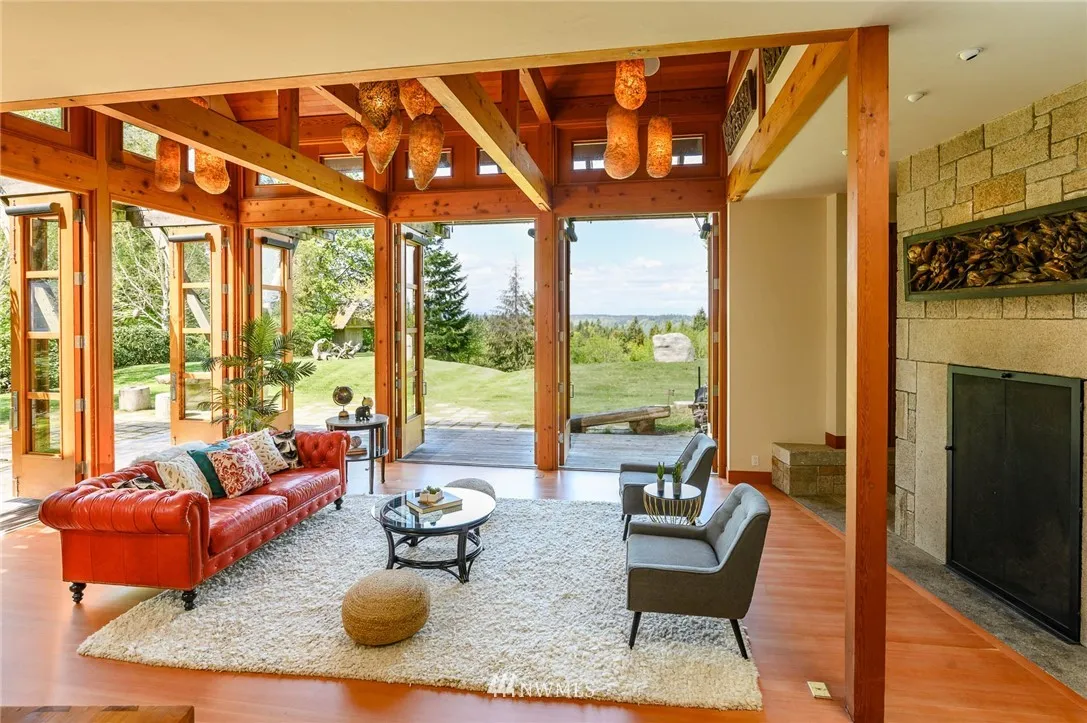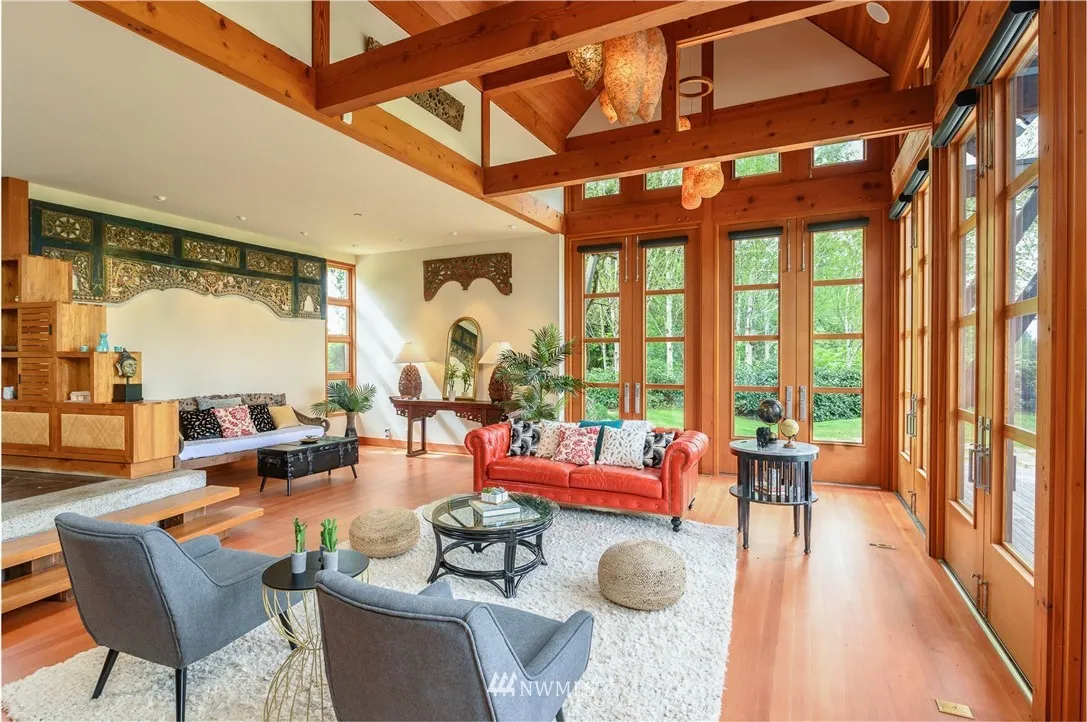 Inspired by meditative gardens of Asia this private 17-acre estate melds the magic of Bali & Java to the pristine grandeur of our NW native landscape. The moment you enter the stone & teak gates a feeling of enchantment & fascination infuses the senses. Framed by the Olympic Mts the harmonious landscape leads to 3 extraordinary buildings, a 150-year-old prayer house from Java, 250-year-old Chinese home from Indonesia & an architecturally designed main home. A retreat from the busy world!