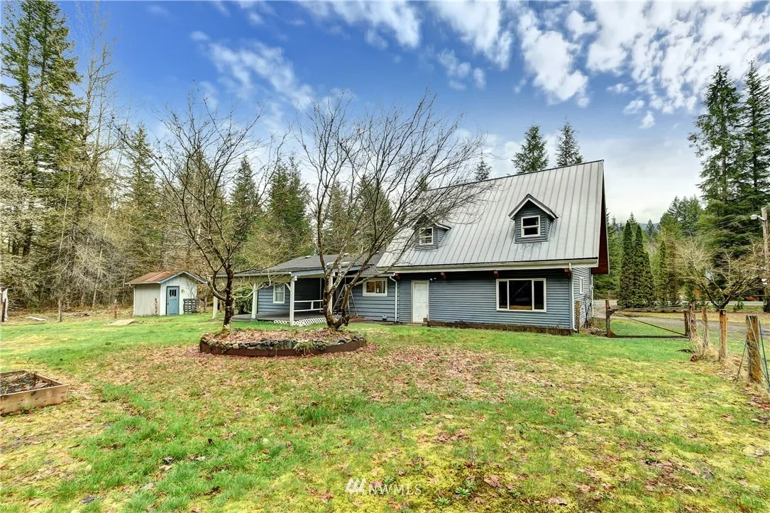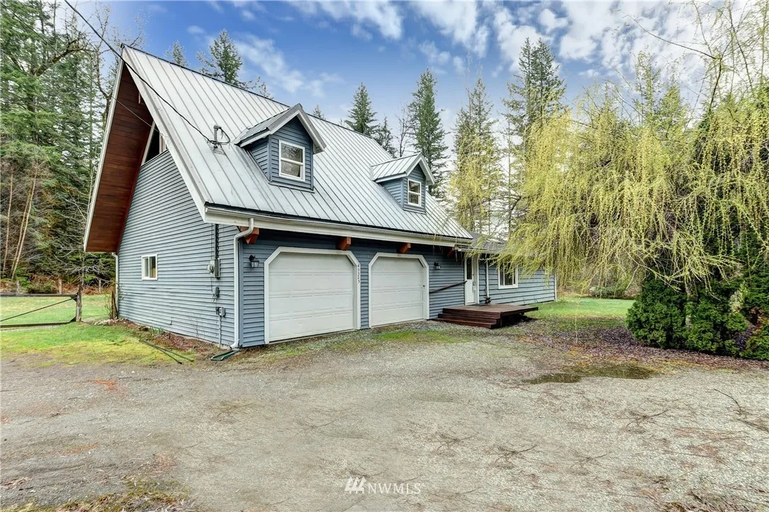 Peaceful Serene Setting with Mature Trees. Single Family 3 Bed/1.5 Bath on a Large Lot. Bright and Open Floor-plan. Vaulted Ceilings. Skylights throughout. New Carpet. New Interior Paint. Kitchen with Granite Counters, Laminate Flooring and Large Island. Beautiful Large Loft with Knotty Pine Vaulted Ceilings. Large Covered Deck Perfect for Entertaining and Relaxing. Large 2 Car attached Garage. Easy Access to Highway. Near Sauk River and Lots of Walking Trails.