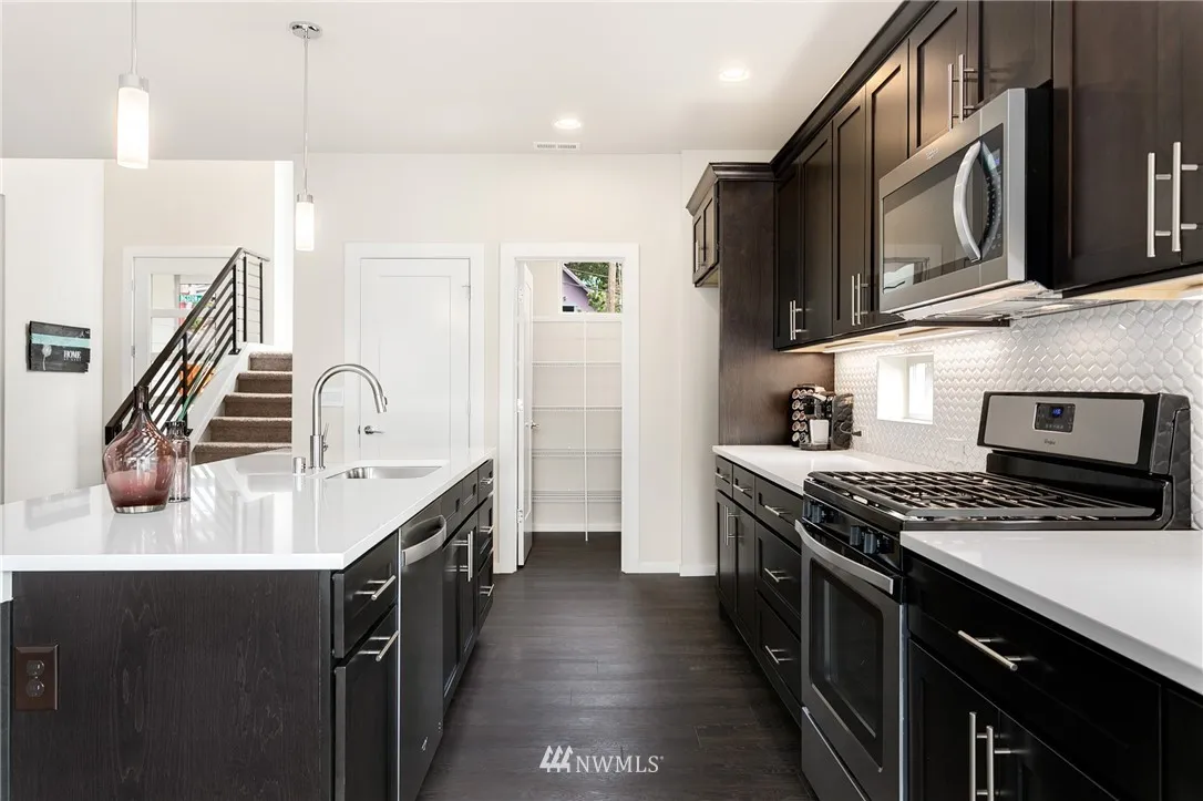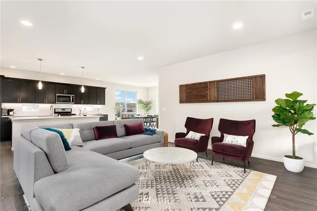 Ask about our $30,000 Buyer Bonus. Former Model Home with views of Rainier and great proximity to Seattle or the Eastside plus no HOA dues. Spacious 4 BRM plan with guestroom/bath on main. Kitchen features quartz counters, extended LVP floors, SS appliances, gas range, refrigerator. Spacious Loft upstairs, convenient utility room w/Front Load W/D, cabinet & sink. Fenced w/full landscaping & sprinklers, 2 car garage w/Wi-Fi GDO. To locate, type “Ladera by Conner Homes” in Google Maps.
