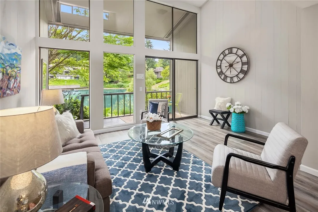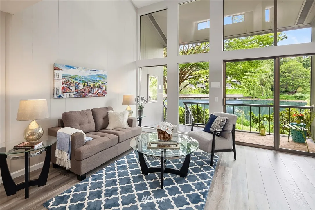 NEW UPGRADE & PRICE! This lakefront townhome boasts wall of windows, vaulted ceilings, new plank floors, fresh paint, new decorator lighting, custom moldings! Kitchen has new soft-close cabinets, quartz counters, new stainless appl. Gorgeous full bath with quartz-top vanity, new flooring, lighting. Full size W/D! Bedrooms feature high ceilings, new lighting/carpets. BEDROOM HALF WALL HAS NEW PRIVACY WINDOW! Secure carport storage. 60-01 has 4 pools, 3 lakes, trails, clubhouse, 24 hr gated entry!