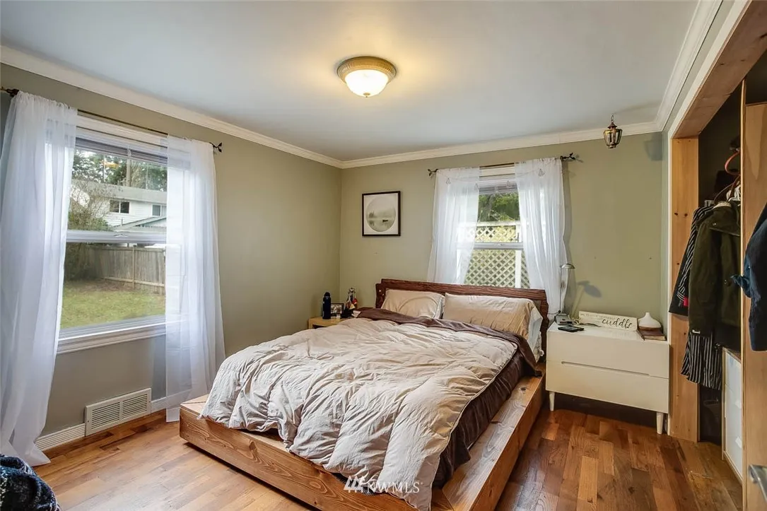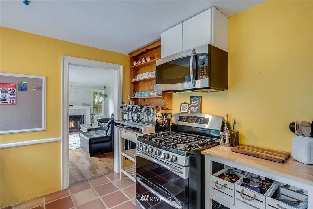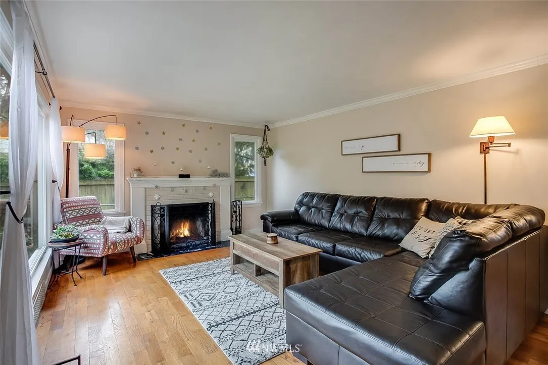 Nestled on apprx .25 acre in the heart of Shoreline. Extensive updates, endless hrdwds and style abound thruout this two-level home. Big picture windows fill interior with light. Cheery eat-in kitchen features tile flooring, SS applcs - most stay (incl W&D). Two bdrms, full bath on main. Lower level: Third bdrm, generous family rm w/second frplc; unfinished work area. Patio overlooks fenced yard w/fire pit; attached walk-out garage. Super location to transit, numerous amenities, main commutes.