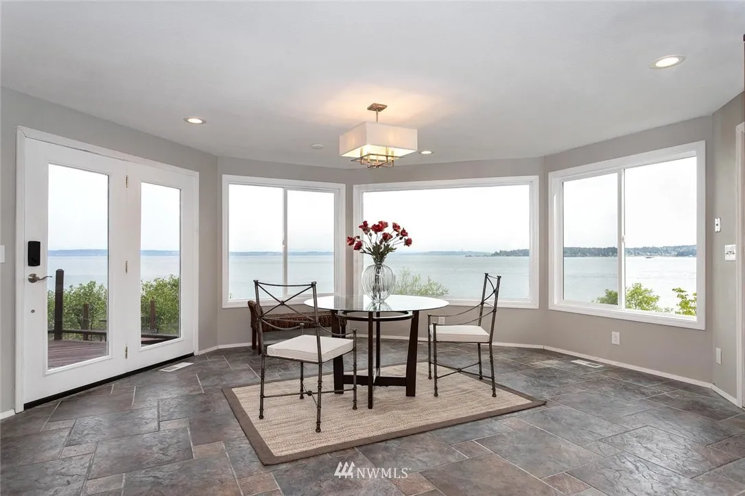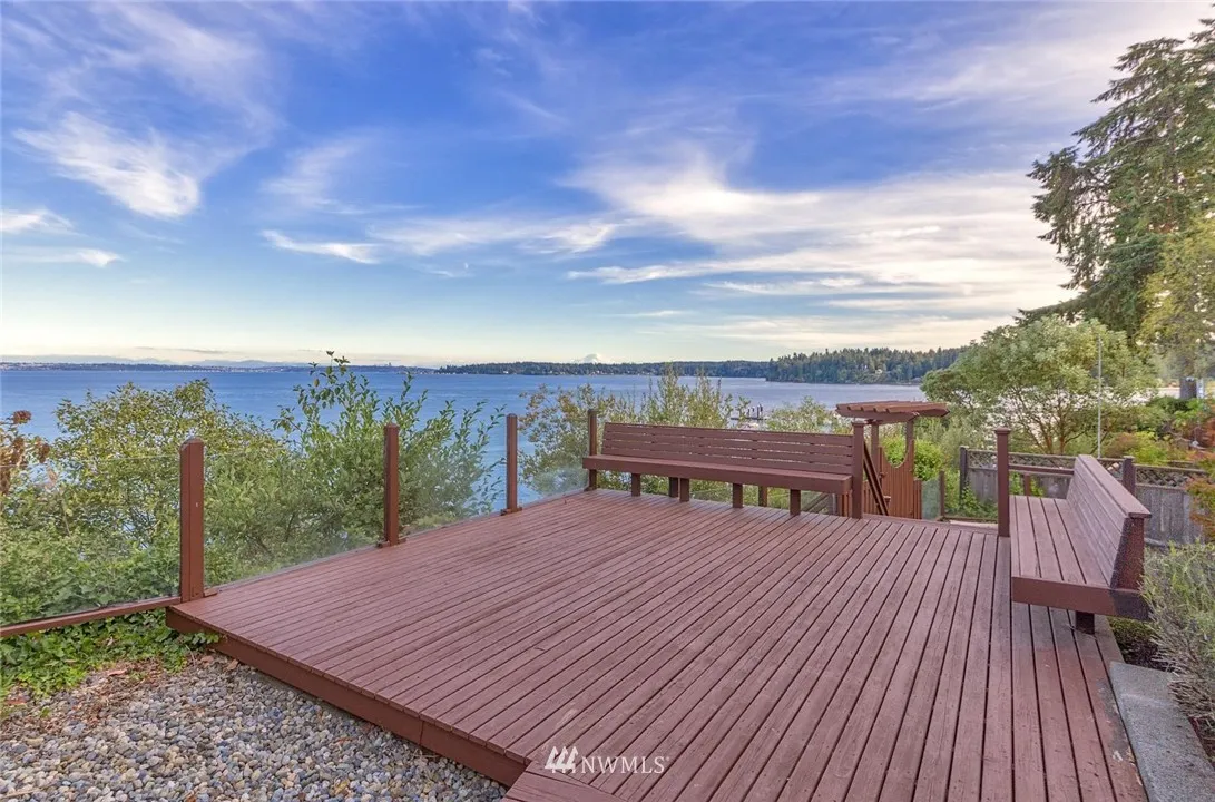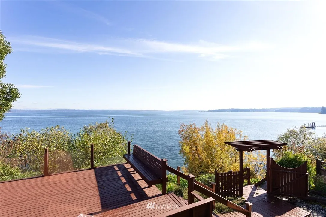 A very cool NW contemporary medium bank waterfront home with private steps to your own bulkheaded beach! Located on a fun eclectic street and neighborhood with nice sunny elevation this recently remodeled home boasts incredible views from the glassed interiors and multiple decks of the Sound, Shipping Lanes, Cascade Mountains, Mt. Rainier and a peak of the Seattle skyline. Recent improvements include new carpets, painted decks and interior, ss dishwasher and range, canned lighting, and more...