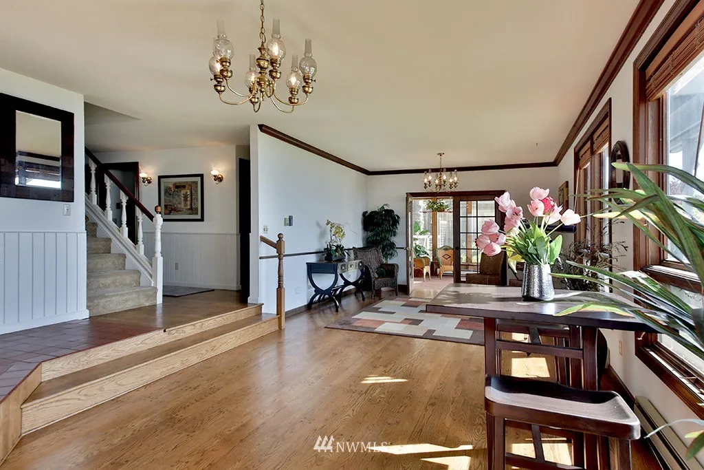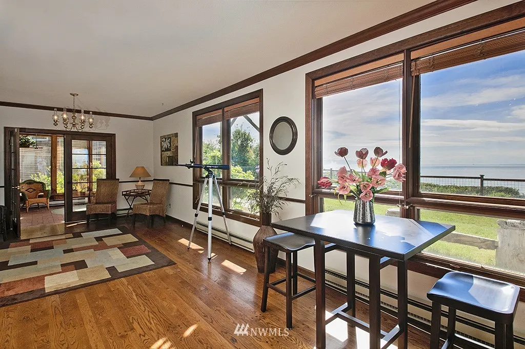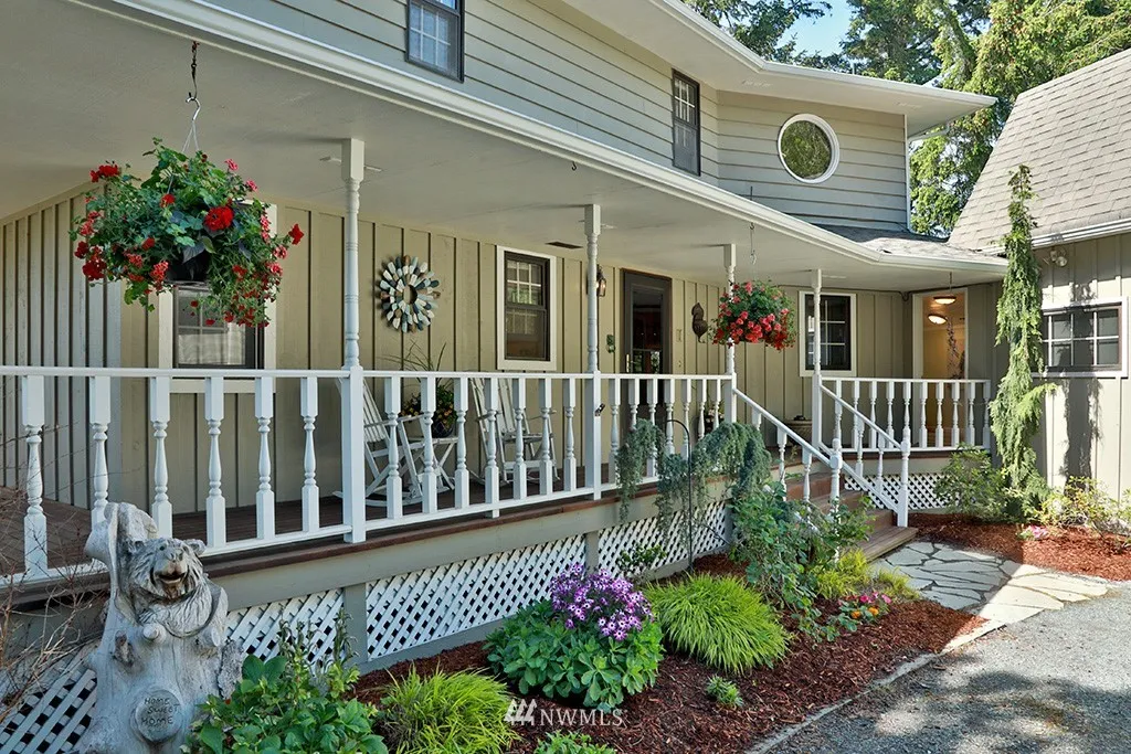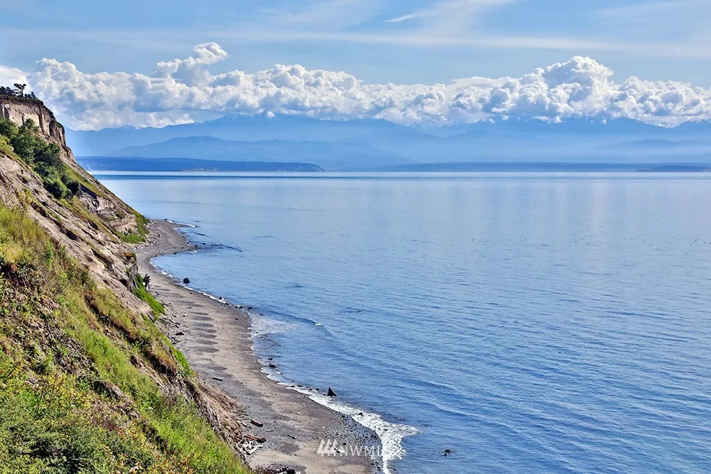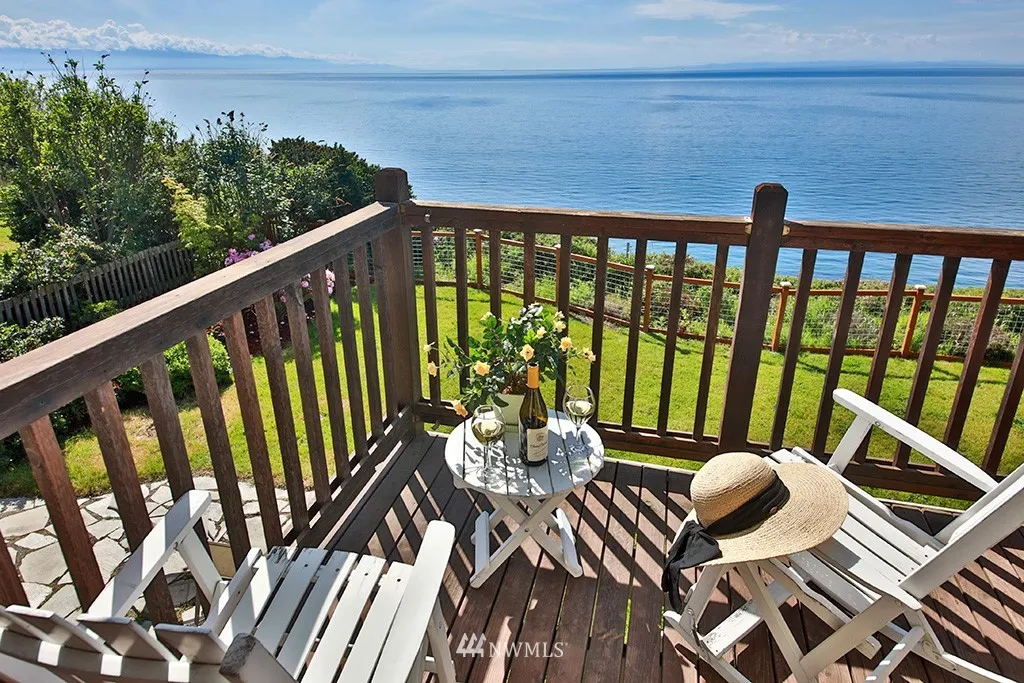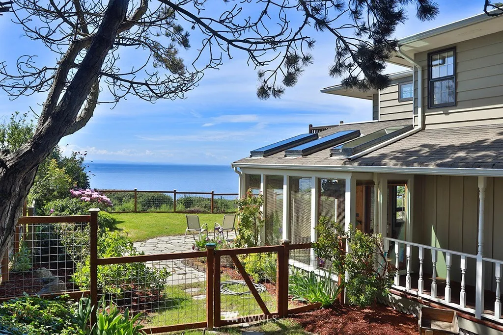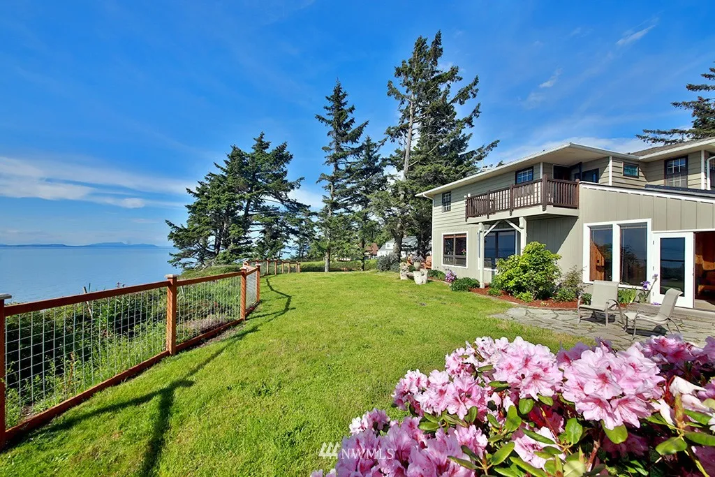 Stunning westside, waterfront home nestled over 105 ft of secluded beach complete w/ private look-out point! Spectacular views of sunsets, shipping lanes, San Juan Islands, Olympics await you in this 3 bdrm, 2.5 bath hideaway. Master suite w/ balcony, attached den plus sitting area invites relaxation. Gourmet kitchen filled w/ top-of-the-line appliances, greenhouse, studio, shop area, endless wrap-around decks & patios make this a magnificent Whidbey Island retreat. A Dream!