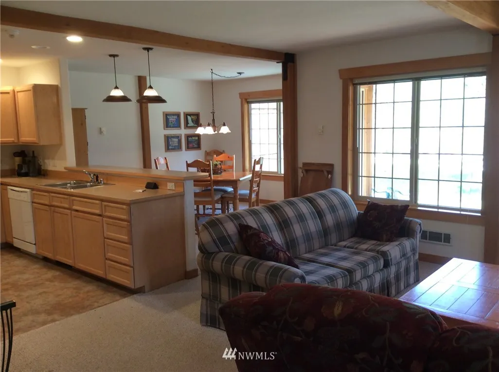 Prized location on the bluff! Log & Cedar townhouse of quality construction w/ thoughtful use of space for full or part time residence. Great room w/open beams, spacious kitchen w/bar seating, sunny dining area, Master Suite, 2 BA & bedrooms on upper level & ex-large roomy garage. Private covered deck & big back yard, overlooking scenic valley, short walk to Winthrop & all season trails for hiking & biking. Cascade Condominiums; excellent HOA, approved for nightly rental & partially furnished.