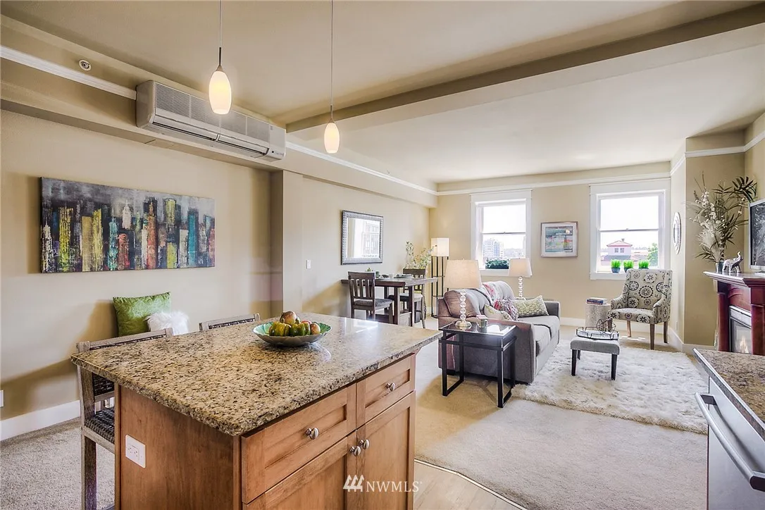 Ultra-chic urban pad at the Vintage Y, ideally located in the heart of Tacoma's Theater District. Just out your door to the Farmers' Market on Broadway, fabulous McMenamin's Elks Lodge Temple, amazing variety of restaurants, superb entertainment venues, spas, boutique shops, Wright Park & more. This condo lives large! Amenities include roof-top sun deck & private fitness center. Here's your chance to own a valuable piece of Tacoma's history! Staging has been removed. Photos on display in condo.