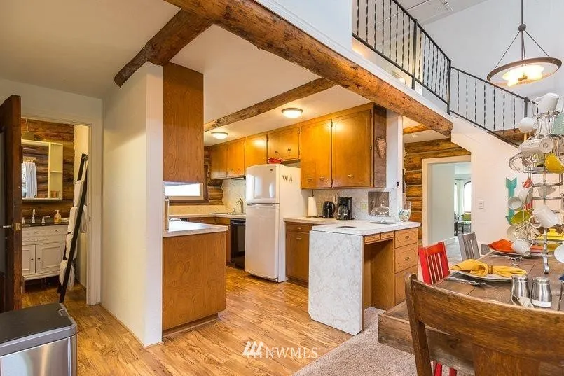Enjoy modern, rustic living from this water view home that sits on close to 5 acres & offers lots of privacy. This 4 bedroom, 2 bath hybrid log home features natural light from the numerous skylights, large rooms for living & entertaining & is just minutes from downtown Port Angeles. Home has had over $20,000 of improvements since sellers purchased it. These include clearing of trees to maximize the southern exposure, a new crushed asphalt road, a private gate to the neighborhood and much more!