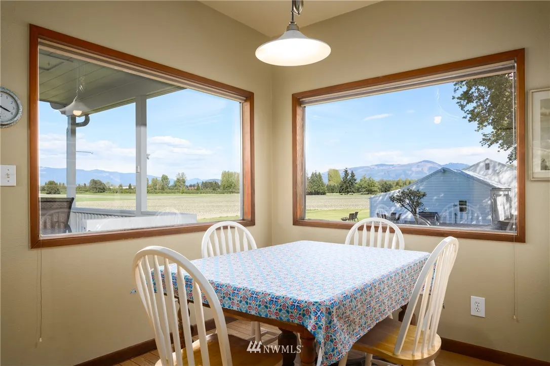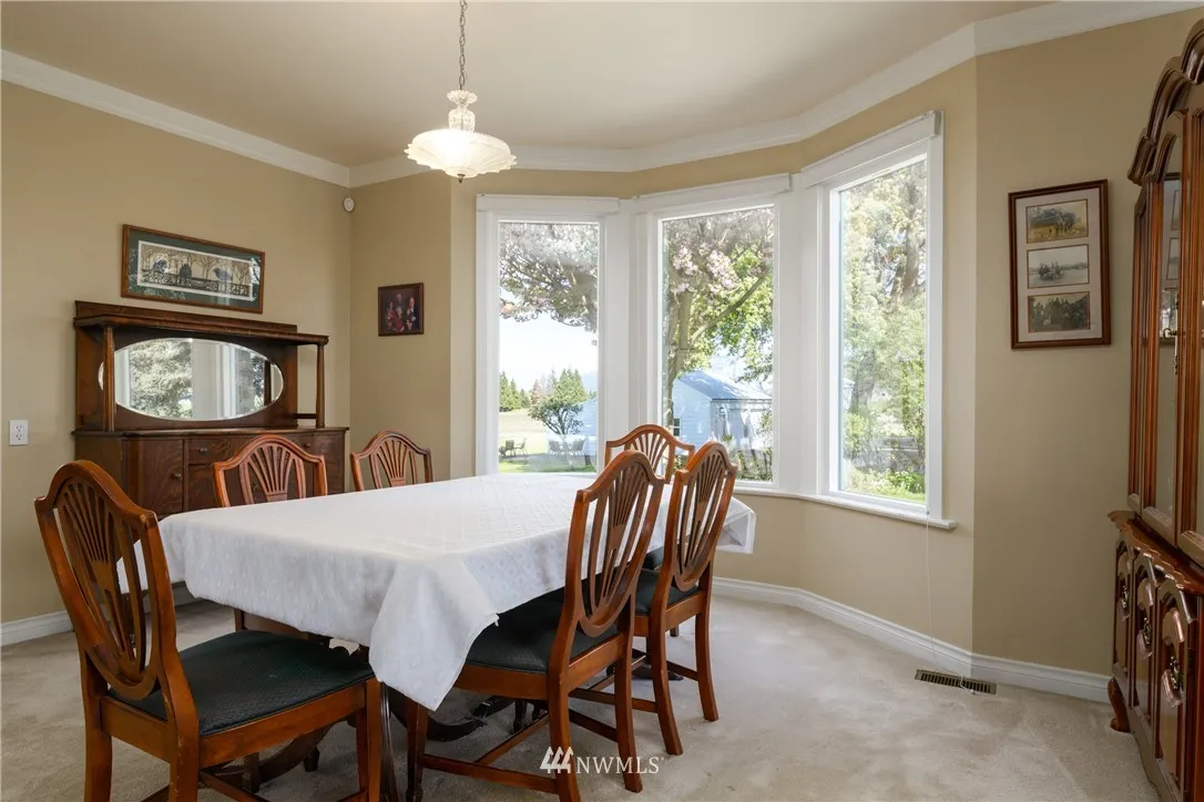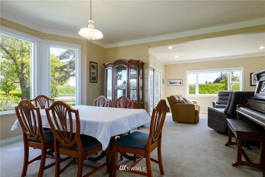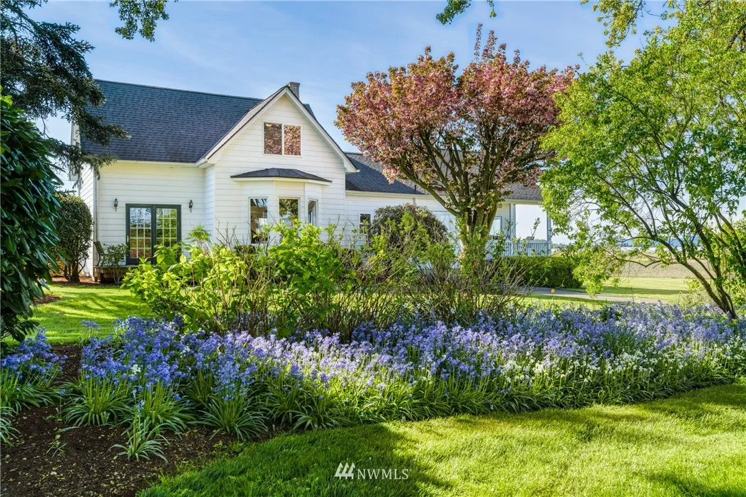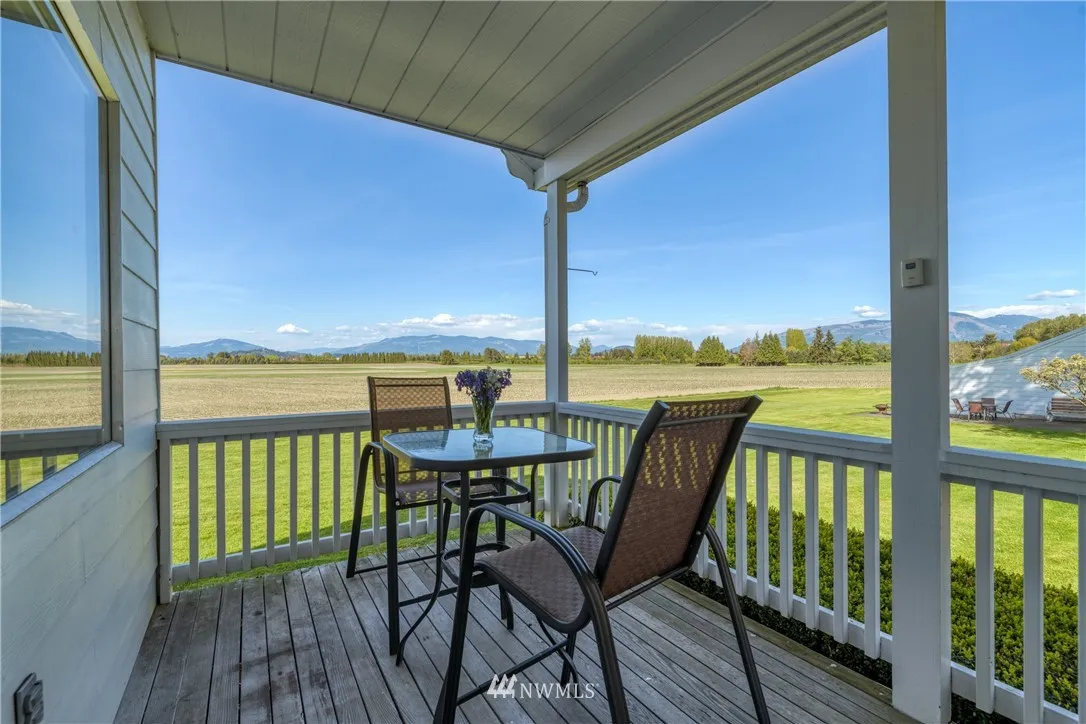 Classic farmhouse on 25 acres & river frontage. Incredible views over the fertile farmlands, river and out to Mt Baker, this charming 3 bedroom, 2.5 bath home boasts a main floor master suite w/ walk-in closet & private bath. Kitchen w/ breakfast nook. Large dining & living room w/ gas fireplace. Light, bright and airy upstairs featuring 3/4 bath, 2 bedrooms & den w/ great river view. 36'x36' shop plus a two car garage, fruit trees. Wonderful location surrounded by farmland, great spot to fish!