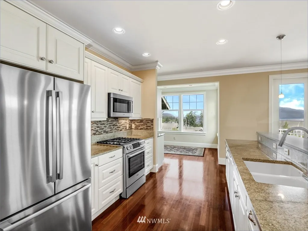 Breathtaking updated townhome in one of a kind Portalis community. Open kitchen with new Bosch appliances. Main level bedroom has been converted to 2nd master with private entrance. Brazilian cherry hardwood floors and new Karastan carpet. The views of Guemes Channel and San Juan Islands fro inside as well as from spacious low maintenance deck are incredible. Close to everything has to offer.
