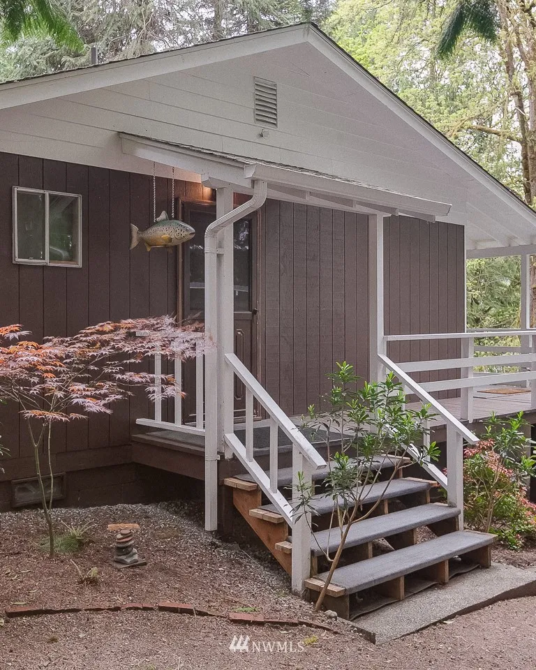 Lake McMurray waterfront retreat in a private setting, the perfect place to take in wildlife & tranquility. Well maintained home comes fully furnished & has ample storage & shop space. Terraced landscaping w/Botanical gardens, native plants, & various trees. Large private floating dock, w/ladders for swimming. Launch the Kayak right from the property. Lake is stocked annually for fishing. The ideal setting w/Mt. views, lakefront, wildlife habitat & just in time for Summer! Easy I-5 access.