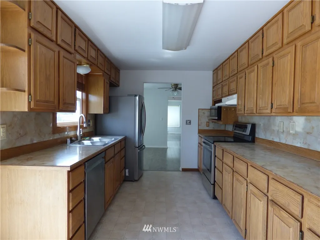 Charming 1950's Craftsman centrally located & within walking distance to schools & shopping. Lovely mountain views from southern side of home. BRAND NEW CARPET installed 7/10/19 & newer stainless steel appliances, sitting on .44 acres to spread out with 1,000 sqft of paved parking. 3 bedrooms on main level & 2 bonus rooms downstairs. Fully fenced backyard & separate fenced area for pets/small livestock. Lots of outbuildings for toys/tools. Raised garden beds, rhubarb, cherries & blackberries.