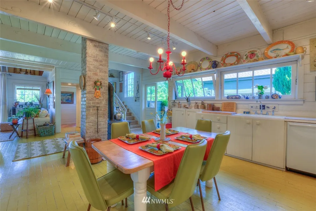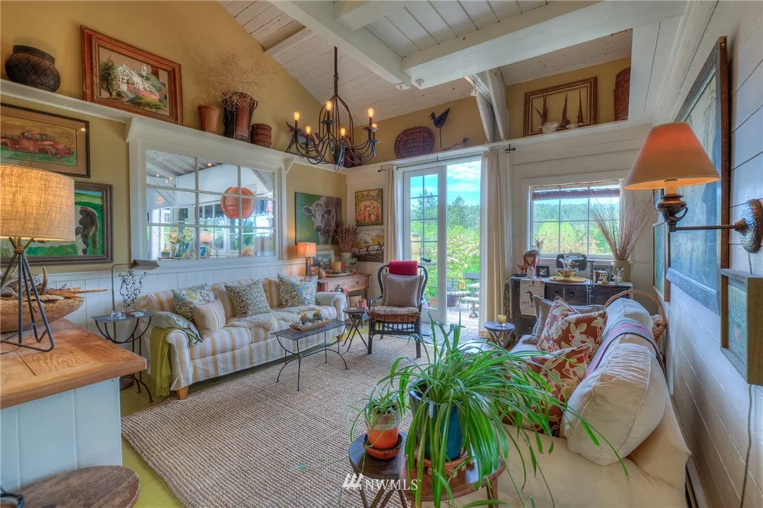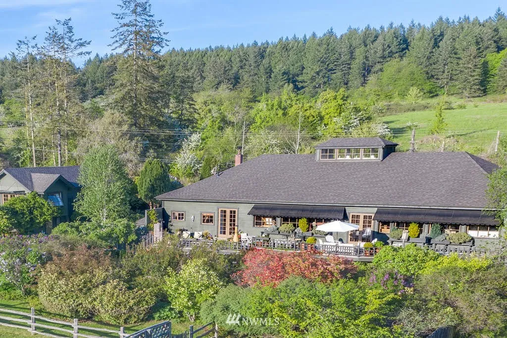 Lifestyle flexibility to live/work/entertain on impeccable 3 acre compound in Deer Harbor hamlet near float planes & marinas. Marine views across 2 acre meadow provide setting for unique, 2 bedrm 4,000 sf main house w/ dramatic open floor plan.Soaring ceilings, exposed trusses, wood floors & stone hearth. Light-filled w/ French doors leading to sunny western decks. Charming cottage suites, studio/office, 3 bay garage, chicken coop & outbuildings all nestled among mature gardens.Active VR permit.