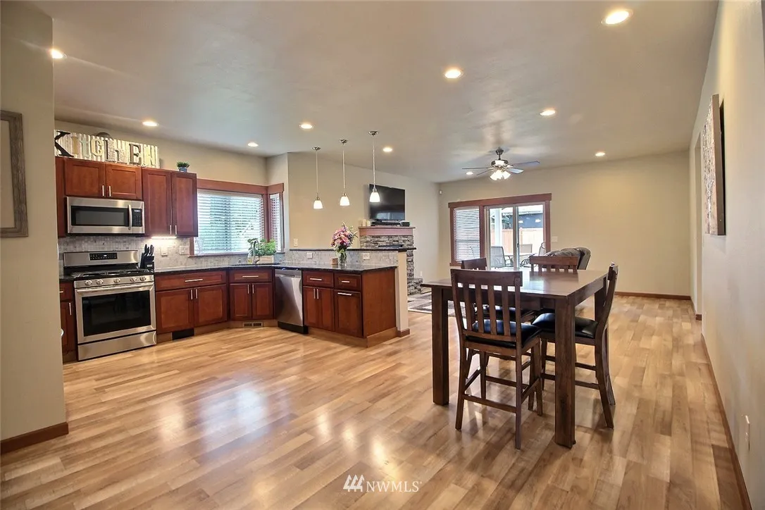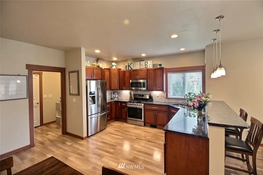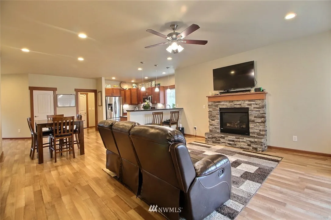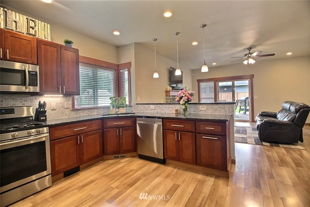 Amazing 4 Bedroom Home in Enumclaw. Open Concept living featuring laminate hardwoods throughout main level. Custom Kitchen w/ Slab Granite, SS appliances, Gas Range tons of Cabinets & Soft close Cabinets. Custom Mill work throughout home w/ Central Vac & AC! Main floor master suite w/ 2 additional beds on lower level. Covered patio w/ ceiling fan. Upstairs you have a Large Bonus room 4th bedroom and 3/4 bath. RV Parking! This home has so much to offer and no HOA!.
