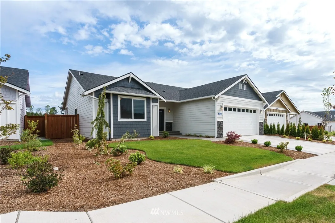 MODEL HOME. Popular rambler plan. 3bed+Den 1.75 ba. Vaulted great room w/gas fireplace. Kitchen w/slab quartz countertops, ss appliances and gas range. Den w/double doors. Tall ceilings and windows. Heat pump for heat/AC AND F/A gas furnace. Master ensuite w/walk in closet. Tankless water heater. Painted millwork and doors. Covered patio. Landscaped and fenced backyard. Pics are of similar home, features may differ. 2 car garage.