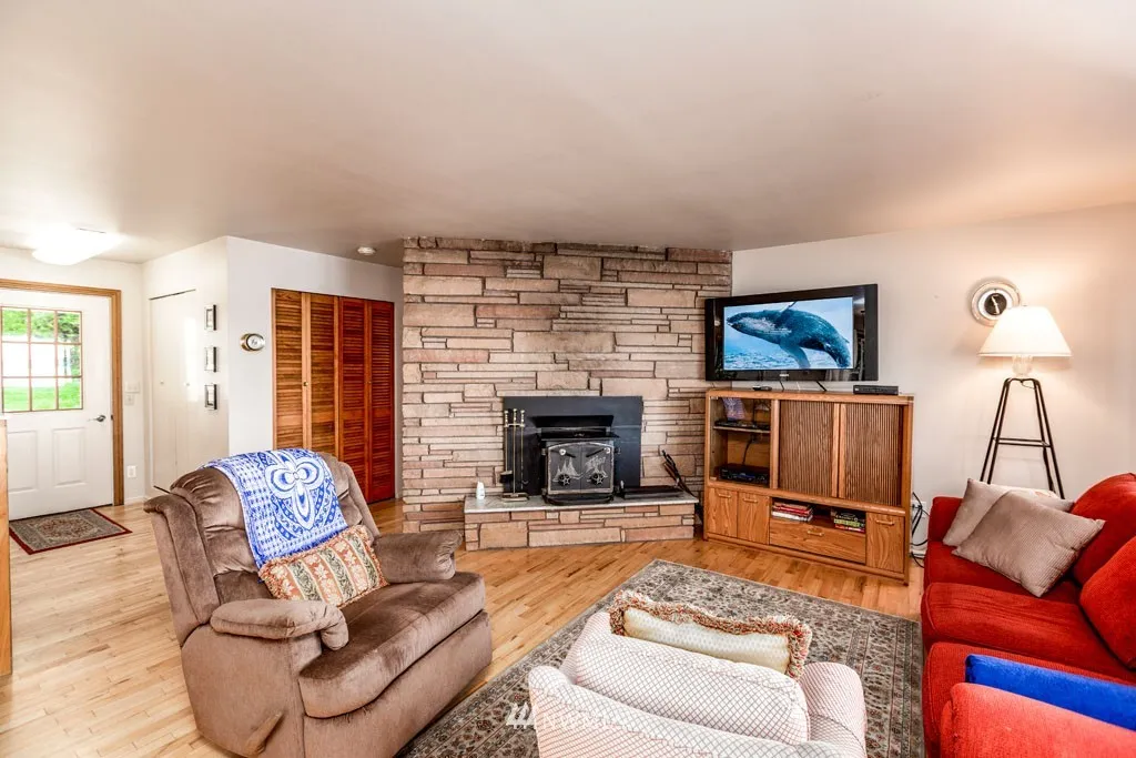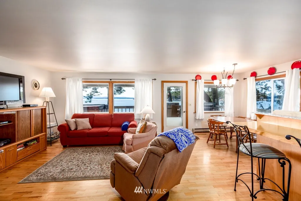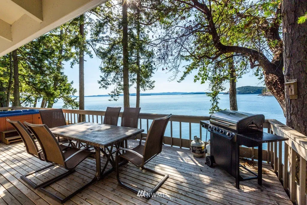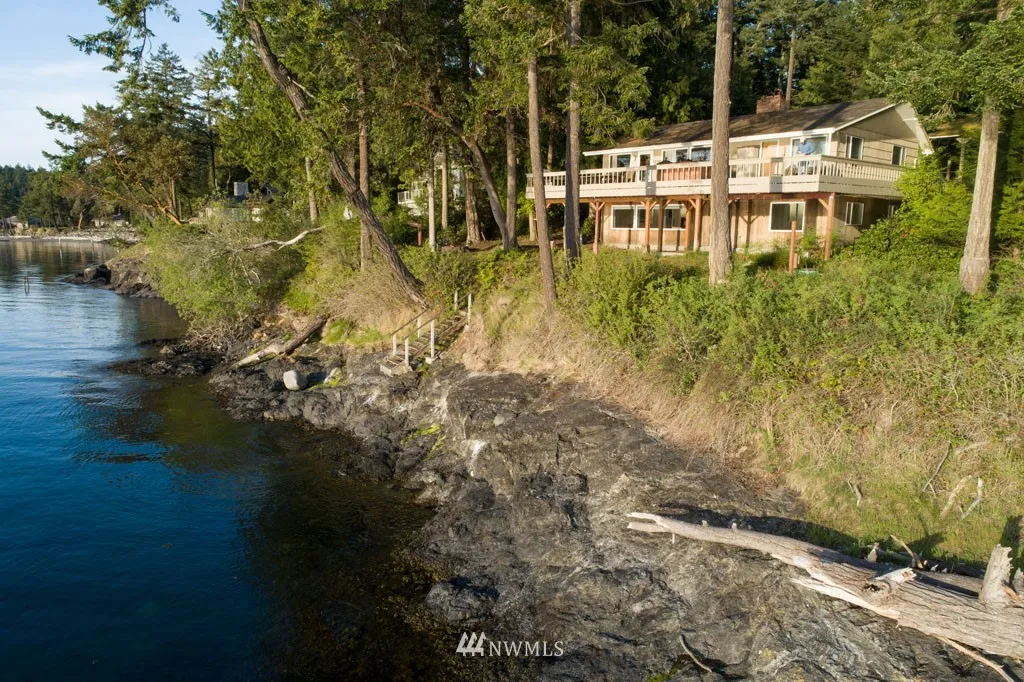 "Water's Edge,Mid-Century Classic" 1966 Era on .70 acre on Yacht Haven Rd. Facing due West 145 feet +/- water frontage.Glorious sunsets across Straits. Marine traffic & Orcas entertain you from living room, dining & master bedroom & lower level bdrm & den. 2080 sq ft of living space: Living/dining area, Kitchen,2 bdrms-main level w/1 bdrm 3/4 bath, addl den & laundry with "Flex-Room" for office lower level. Radiant heated bthrm floors. 2 fireplaces. Successful Vacation Rental call for details.