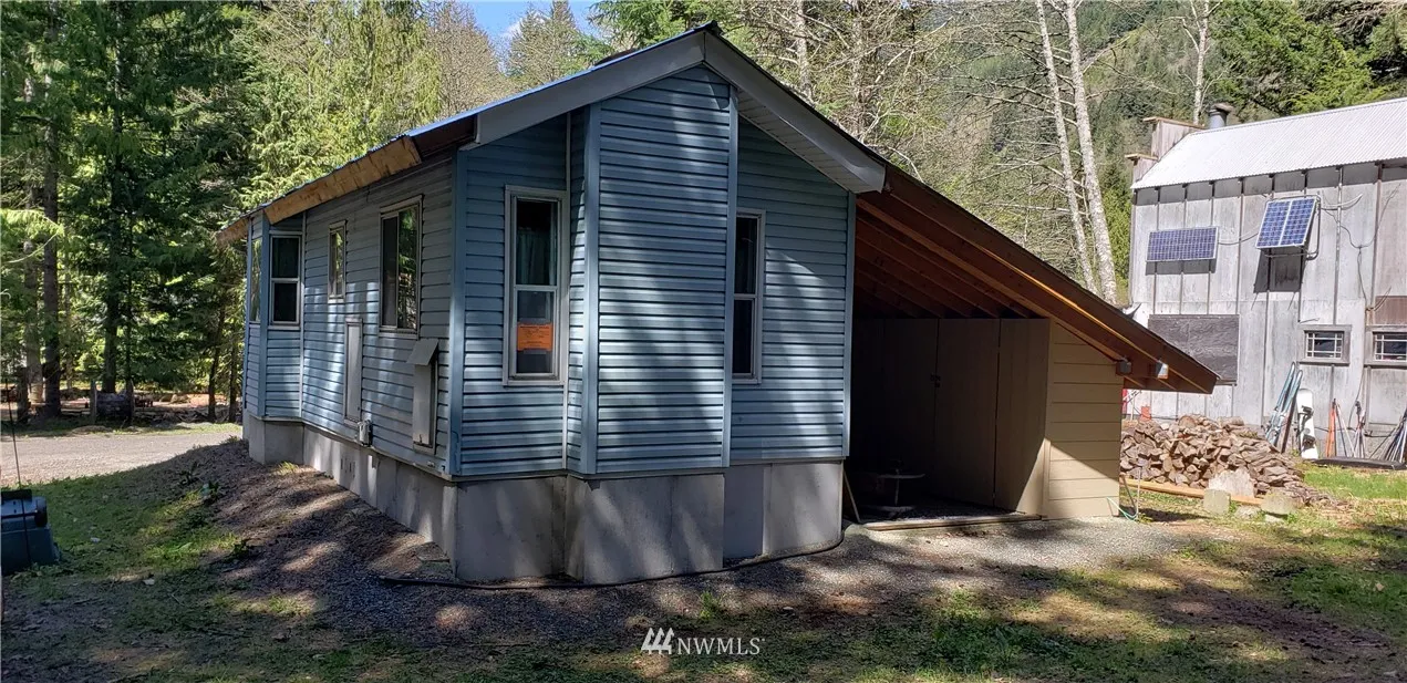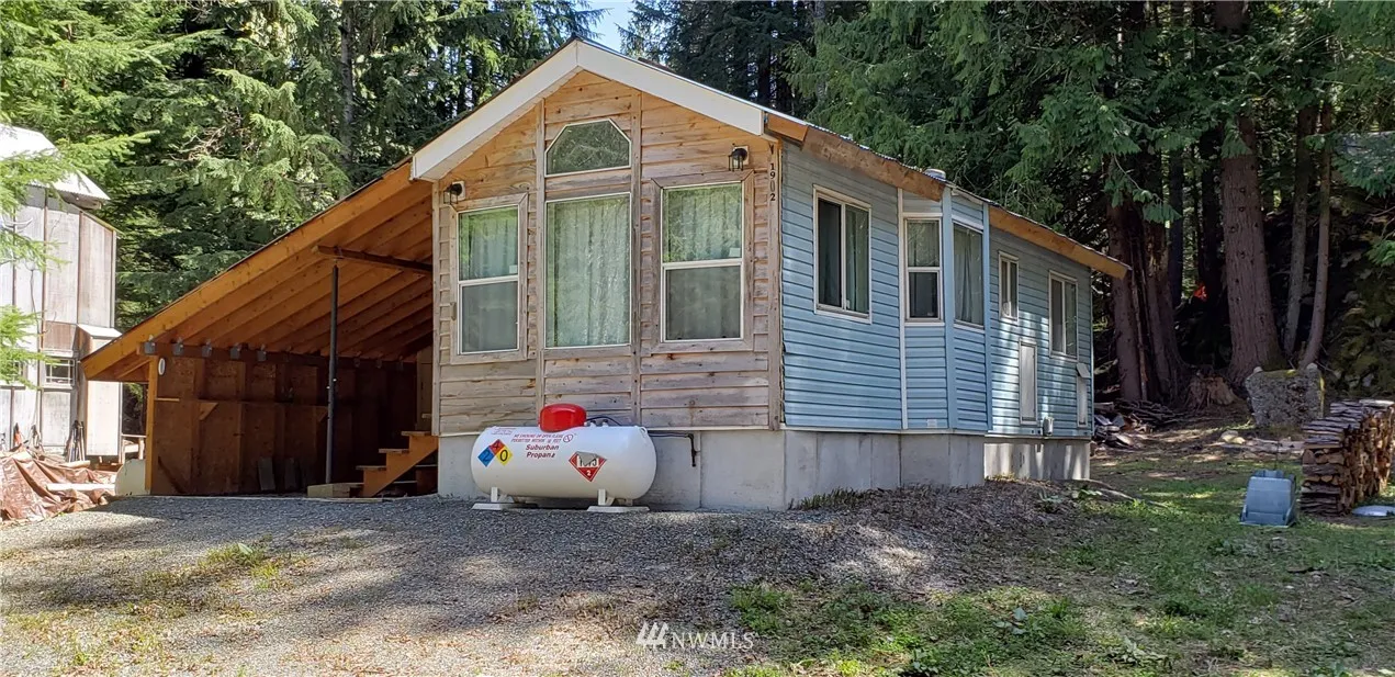 Off Grid Mountain Ski Cabin at Scenic, WA, just minutes, 6 mi. to Stevens Pass. Enjoy winter or summer activities w/access to the Tye River, Iron Goat Trail, hiking trails and 100's of miles of snowmobiling backcountry. 12X32 Park Model is supported by an automatic Propane Generator to a 12V battery bank, inverter supplies 110v to home, water & septic in. Property includes approved plans for 1200 sf cabin, concrete foundation is in. Invest and enjoy now then expand down the road for your needs.