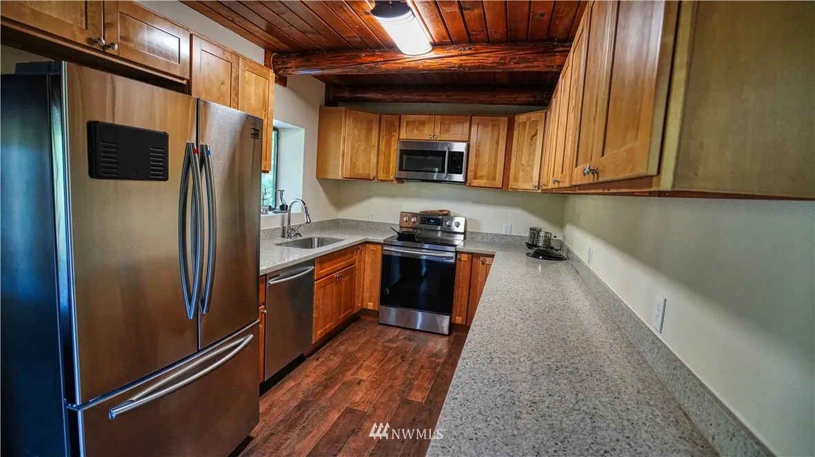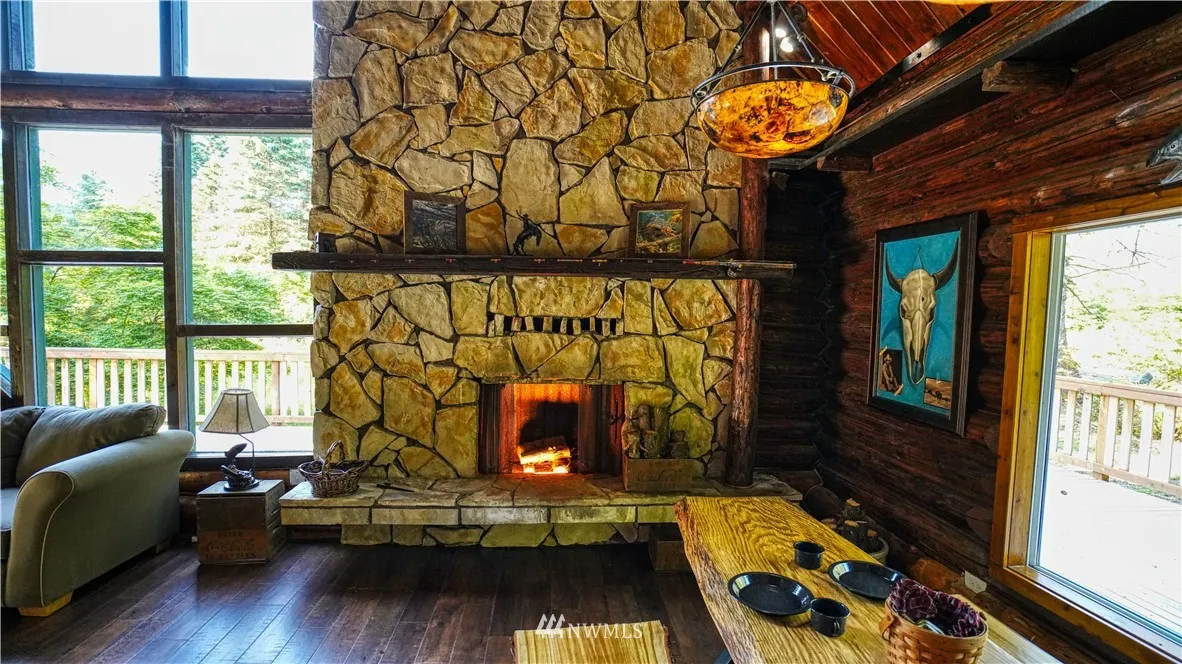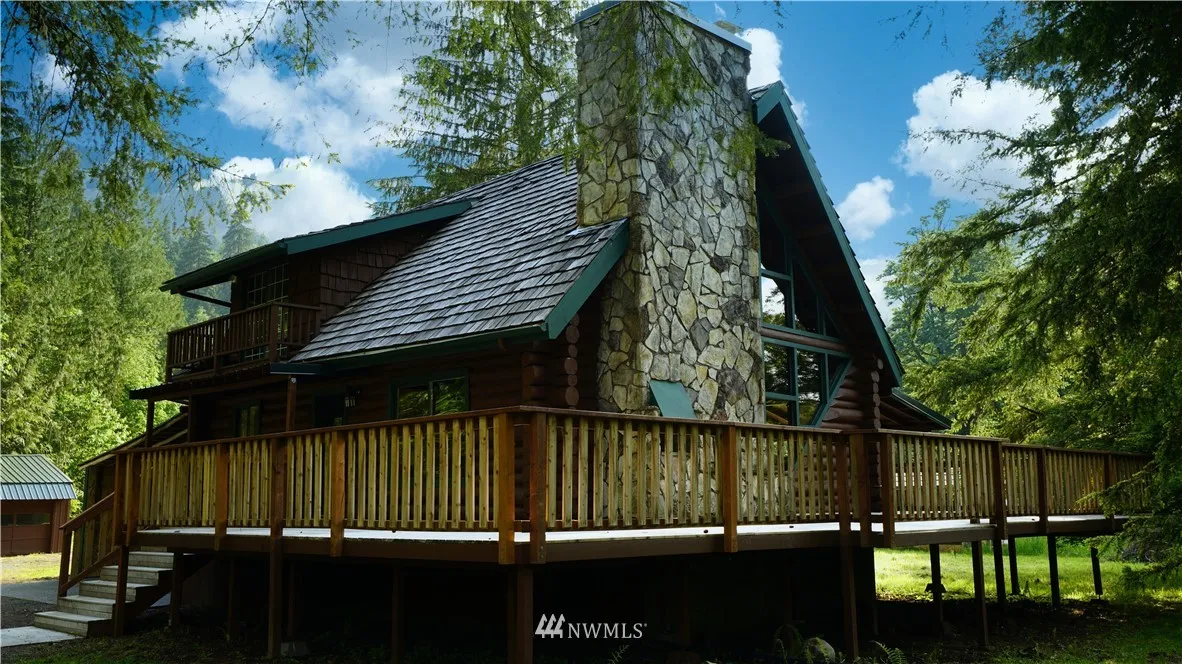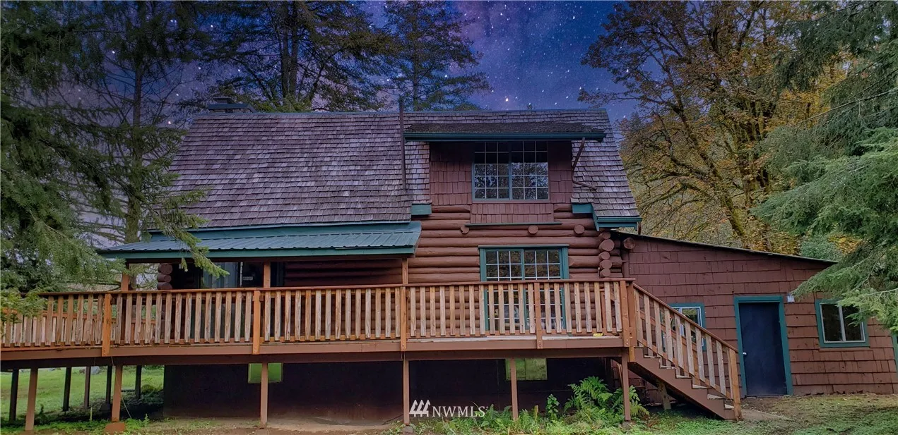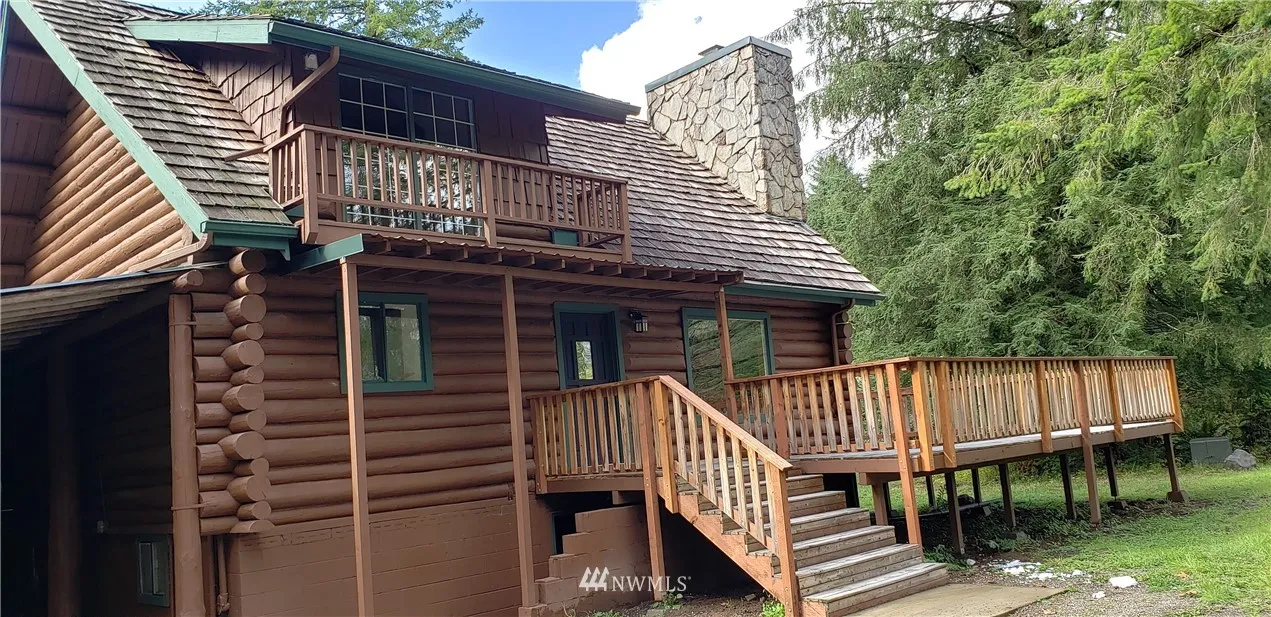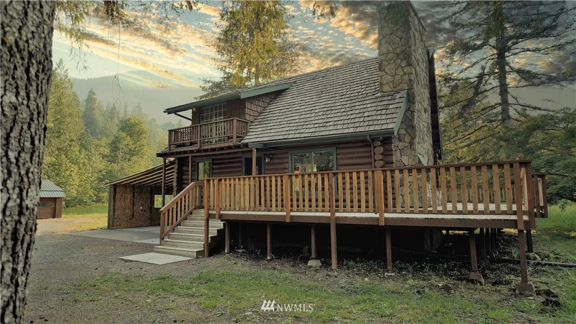Amazing log home with 4 bedroom 2.25 baths on nearly 10 Acres with 5 car covered parking including shop and large carport, Beautiful upgrades including granite counters, new cabinets, new flooring and paint with 2 Master bedrooms with access to balcony and a huge wrap around deck, Grand floor to ceiling rock fireplace with outdoor grill built in. lower bedrooms and large family room downstairs. Come sit on the deck and listen to the nearby Tilton River, come see this slice of heaven today.
