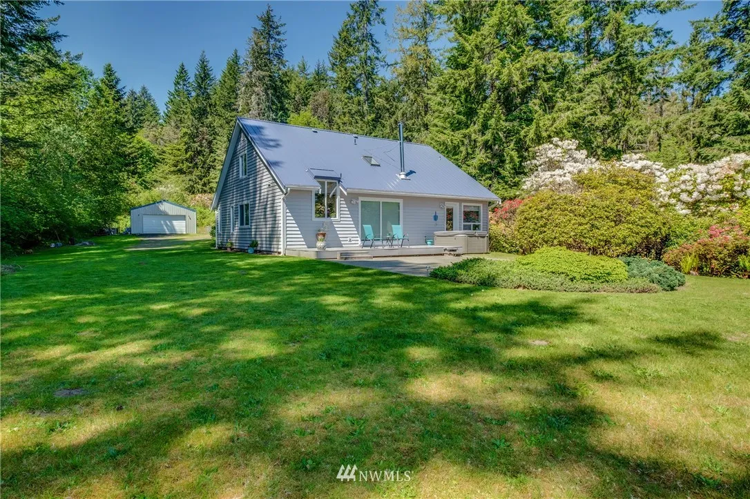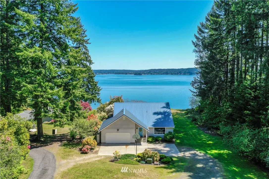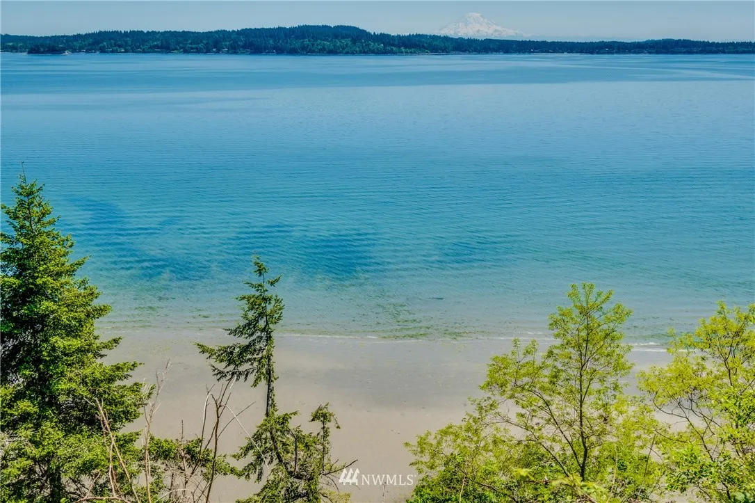 What a place of serene beauty and refreshment with 110 feet of waterfront & Mt Rainier straight ahead! Watch eagles soar, boats go by and wave at your friends in Gig Harbor! This charming Beach House w huge shop sits on high bank water front on the Key Peninsula. The walkway down to the sandy beach is just next door! The Heat pump, Master on the Main, Great Room Floor Plan and Hot Tub w Trex deck will make it a joy to come home! Also 2.5 Wooded Acres, massive Rhododendrons and Azaleas. Heaven!