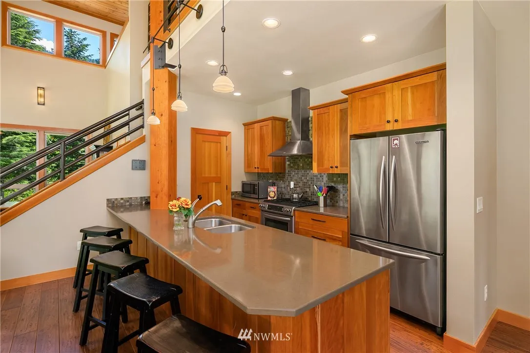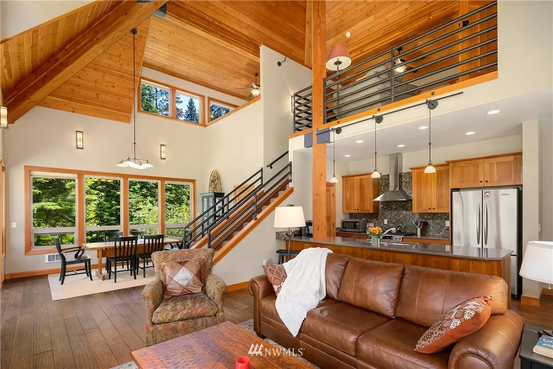 The perfect getaway! This is truly a unique & exceptional quality mtn cabin ideal for the outdoor enthusiast. Nestled in the Ski Tur Valley by Gold Crk Pond, just 50 min from Bellevue & 5 min to Hyak/Summit/Alpental. Views, dramatic detail & fine materials thru-out. Slate entry & baths, high end wood flrs in kitch/great rm, Silestone counters, cherry cabinets, solid doors. Controlled heat in each rm. Ski Tur Valley is a gated comm'ty w/seasonal access (pkg lot 1+mi for snow mobile, ski's, etc)