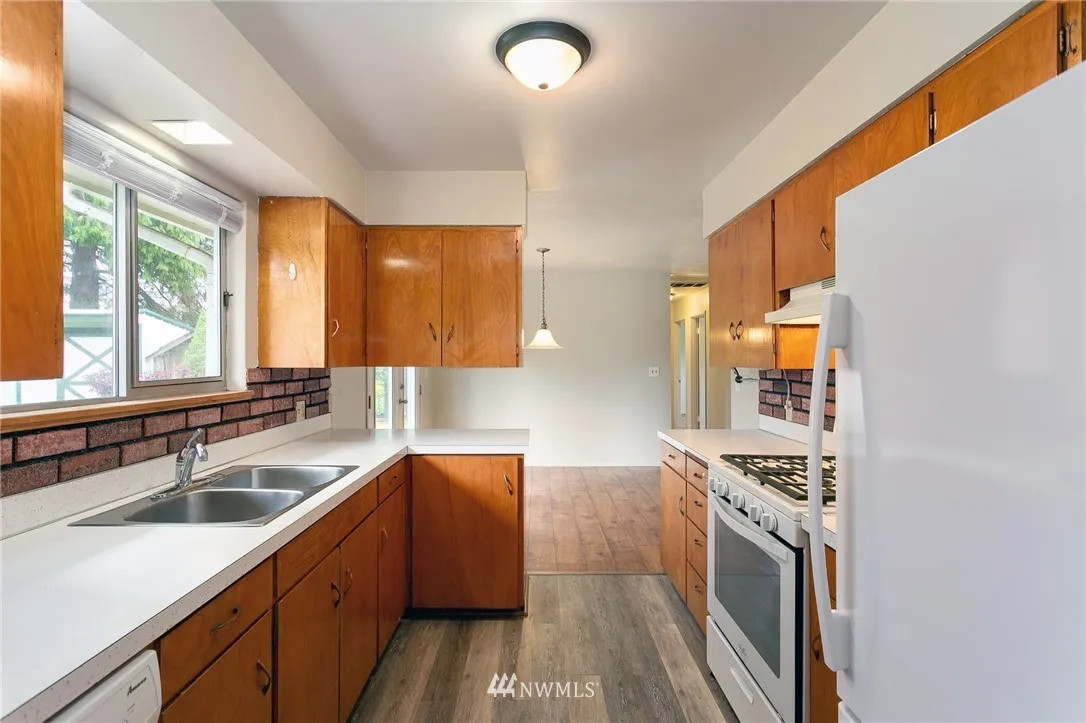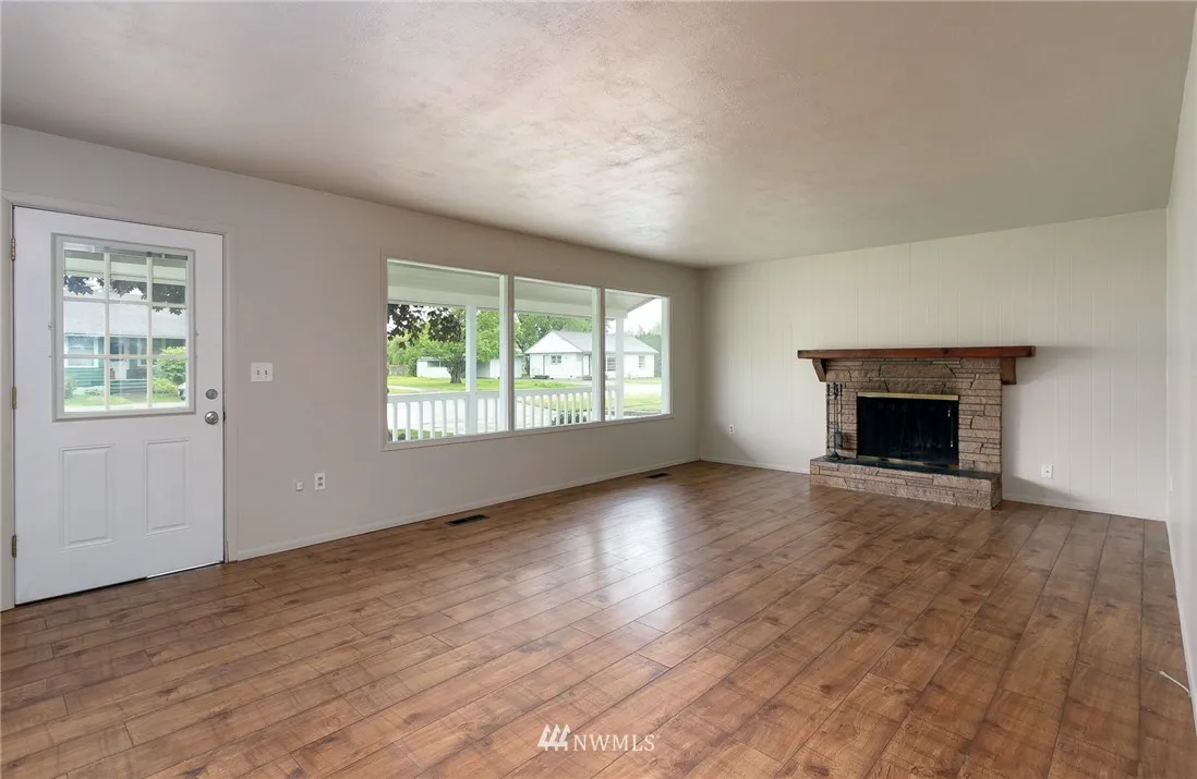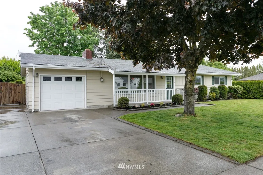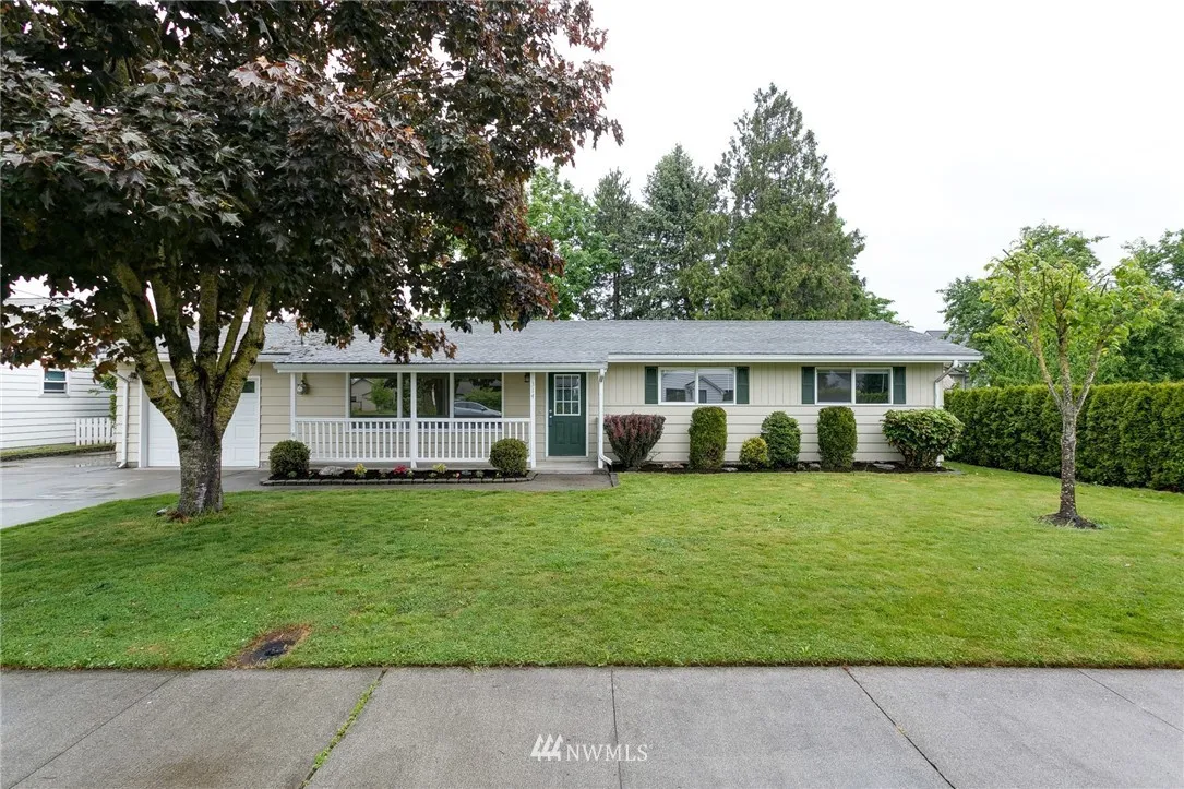 Small town America at it's finest, find this charming single story home w/ covered front porch on well establish street. Private fenced back yard with extra storage yard sheds & lots of parking space beyond the garage! Garden area, flower beds, just hang out space with the patio and yard. New flooring in kitchen & bath, cool old wood floors in the bedrooms. Newer stove/oven & hot water tank - both gas, and a brand new refrigerator. Wood fireplace bring lots of warmth to the living room.