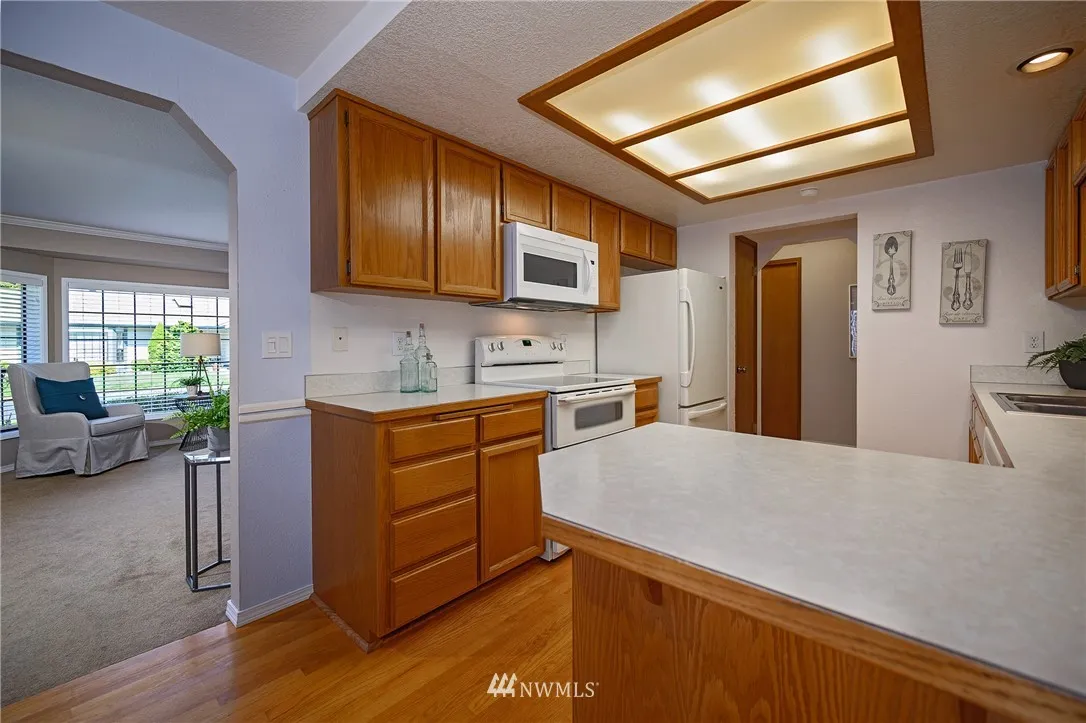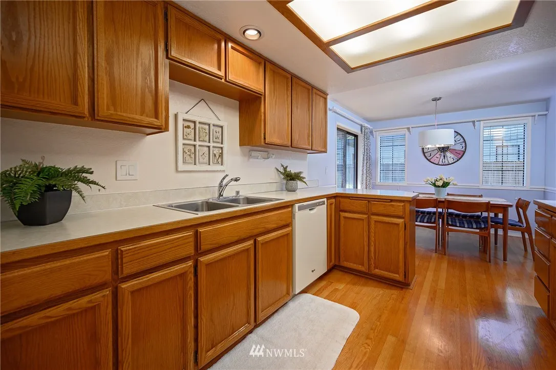 Rare opportunity to own this unique 3 bed/2 bed rambler/townhome in a quiet neighborhood- the inside has a sunny entry w/skylight, a generous living room w/bay window & gas fireplace. The kitchen is spacious & opens to a dining space that leads to a private patio & garden w/fountain. The master bedroom is large w/ a full bath & large closets. The other two rooms & bath are generous in size. The convenience of an attached garage & parking for two more cars. Small HOA & low dues. Hurry!