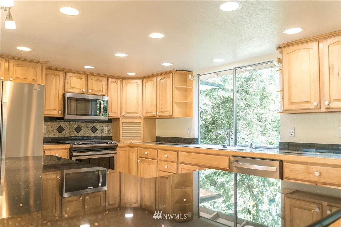 Welcome Home to this Beautifully Updated and Spacious 5-bedroom 3 bath two-story home located in the Northshore school district. This home features all New Roof, Flooring, Gas stainless-steel appliances, gorgeous new granite counter tops. Entertaining size kitchen, large outdoor deck for entertaining. Versatile Lower Level with Kitchenette, Potential rental income or MIL, use your imagination! Minutes to 405, Alderwood Mall and Bothell Business Park! 1 yr home warranty included!