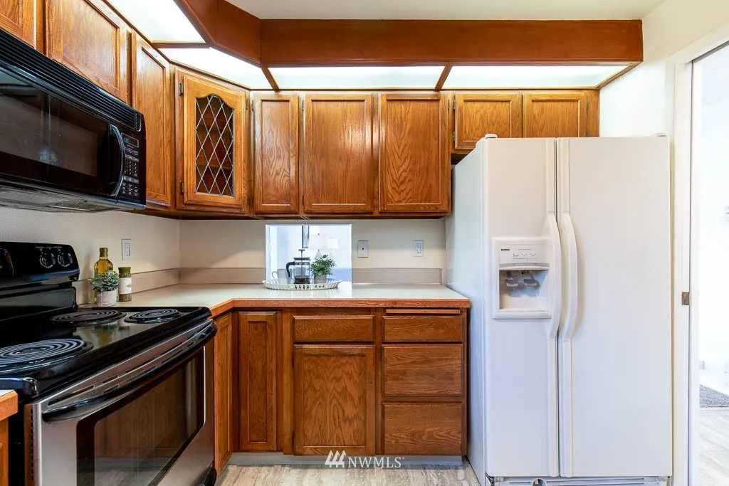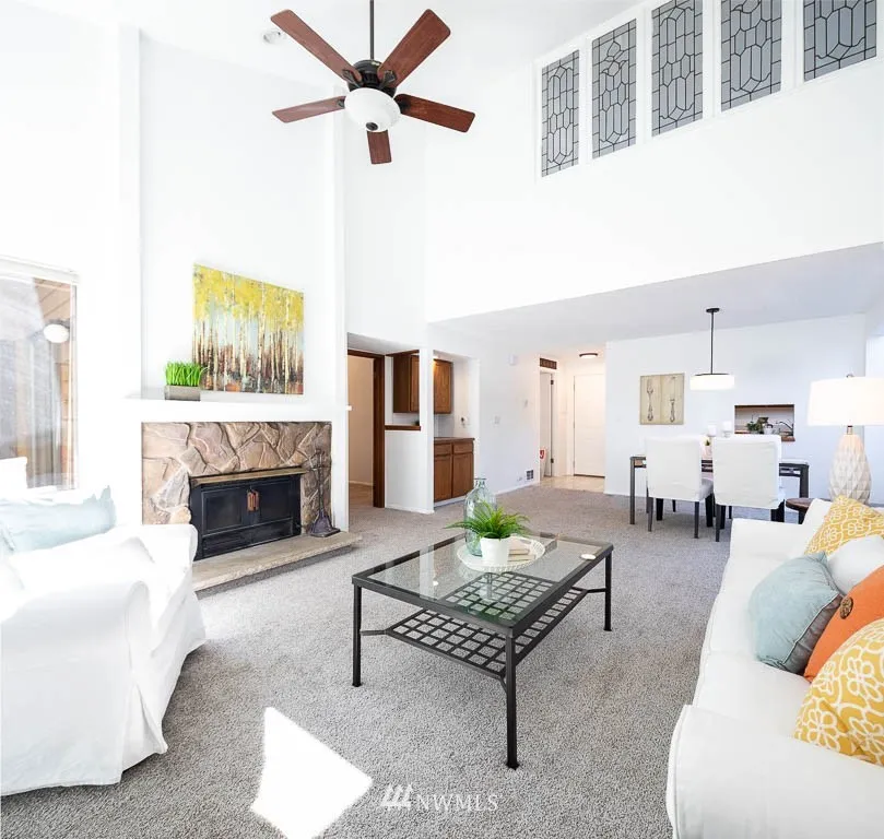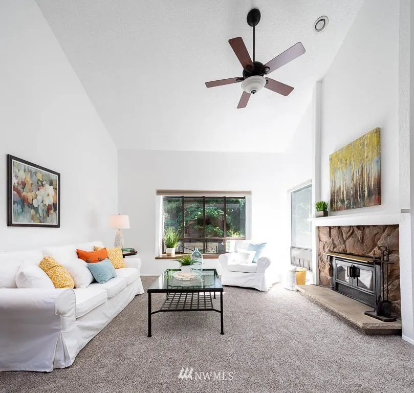 HUGE 1450 SF 2-story, corner end-unit condo with vaulted ceilings, large master and 2 patios! Fresh paint and carpet throughout, bring your vision and style to update the kitchen and bathrooms. The community is quiet, well-maintained, and professionally managed. Northgate has been identified as one of Seattle's urban villages and is currently undergoing massive redevelopment, including the new NHL facility and light rail station. Don't miss this opportunity to get in before the prices go up!