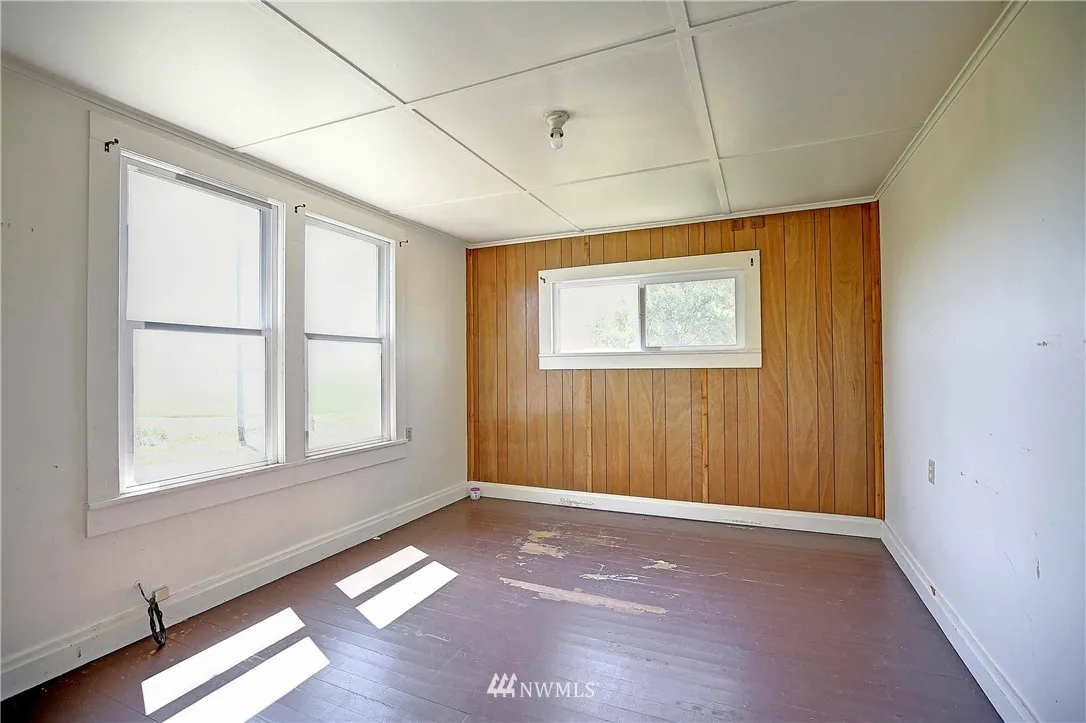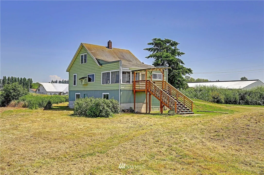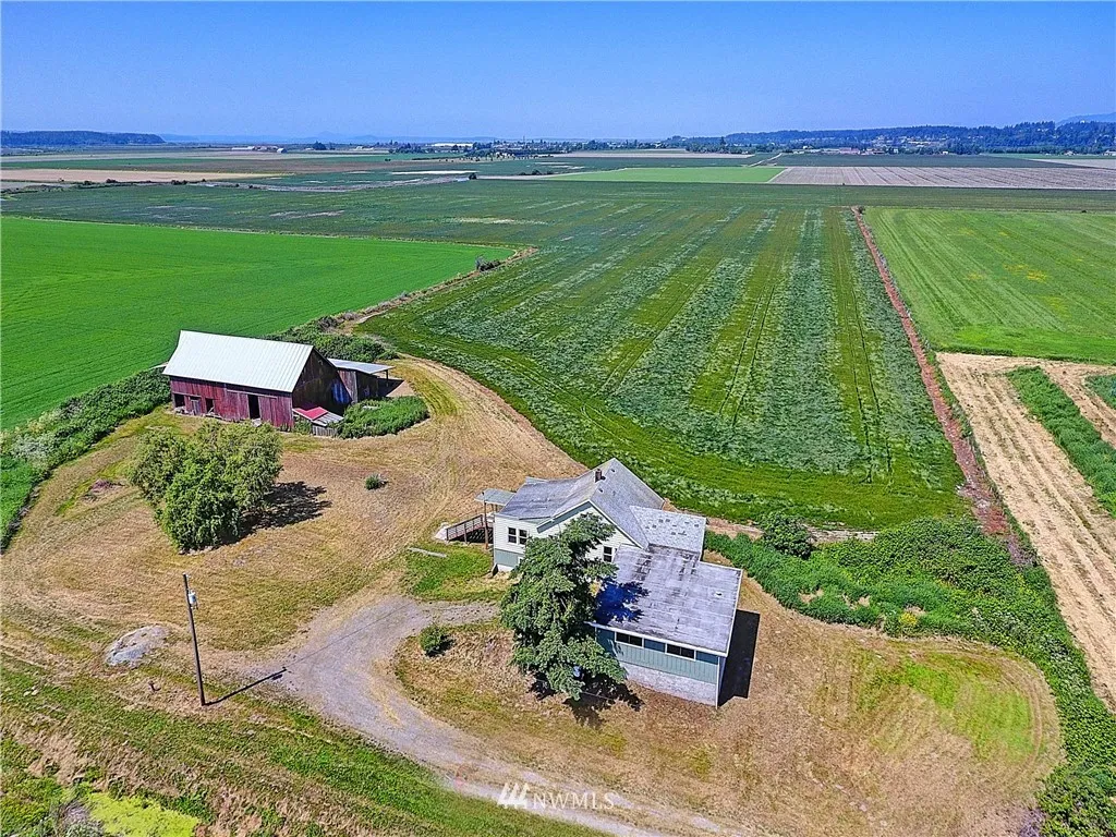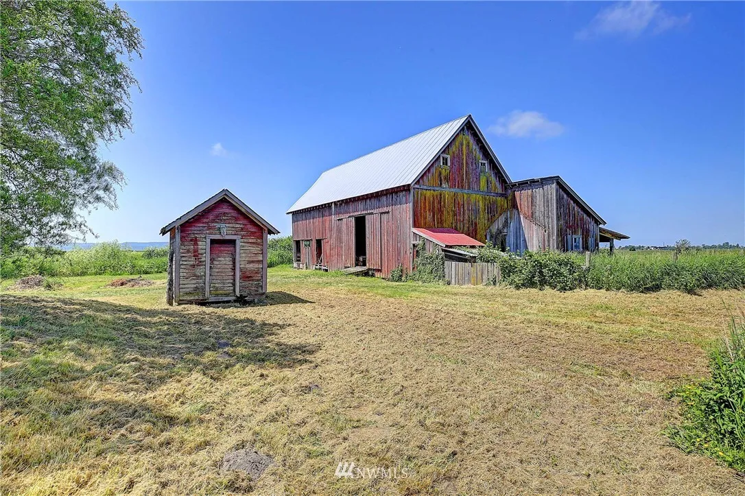 Historic Farmhouse with 31.70 Acres of pristine farm land. Down long private drive way. Home has an attached garage and additional large garage under home. Farmhouse is ready for your touches and TLC! Large barn with open beams and out buildings perfect for storing all your equipment. Great location for the ultimate barn gatherings! Level land with Olympic Mountain views and far away bay views. Close to town and parks. Property sits on two tax numbers.