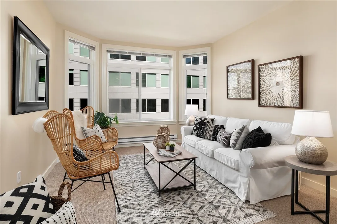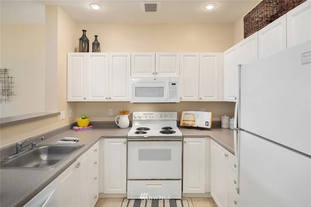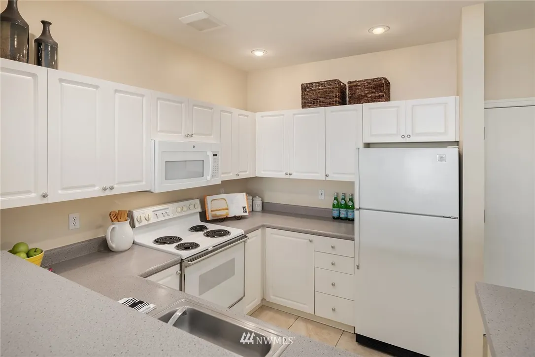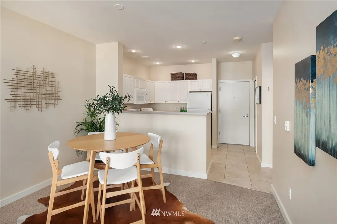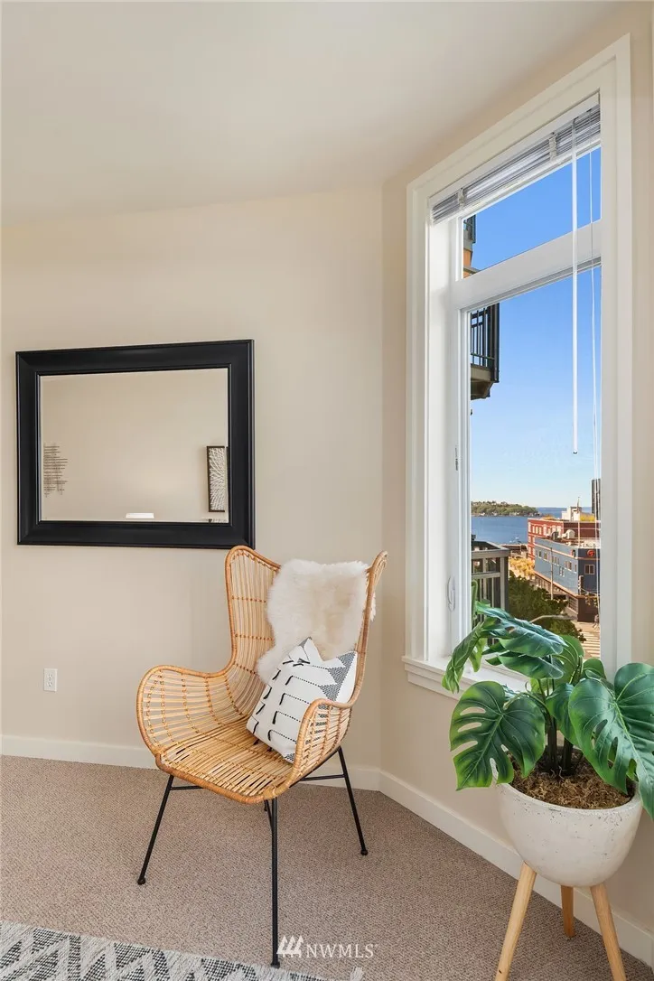 5th floor one bedroom unit in the Belltown Court. Roomy unit facing north, the queit side of the building. Large kitchen, laundry in unit and walk in closet in bedroom. Peek-a-boo views of the Olympics and Sound. This building offers great amenities and easy location to all things Belltown. Whether it's a baked good, dinner out, a movie or just a beverage. Its all at your fingertips. Building has no rental cap, allows short term rentals, is well managed. One parking space and secure entrance.