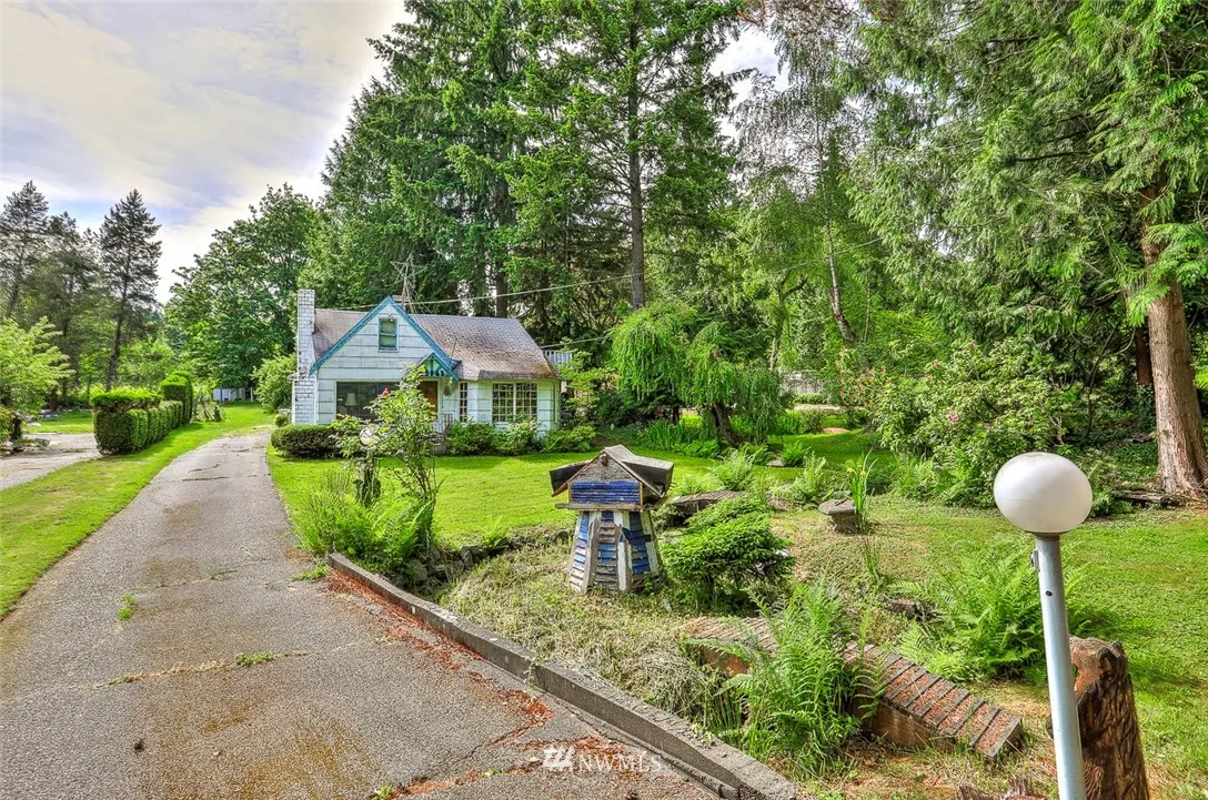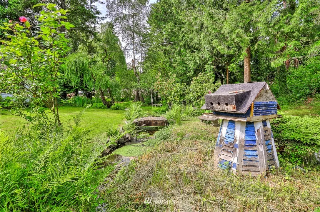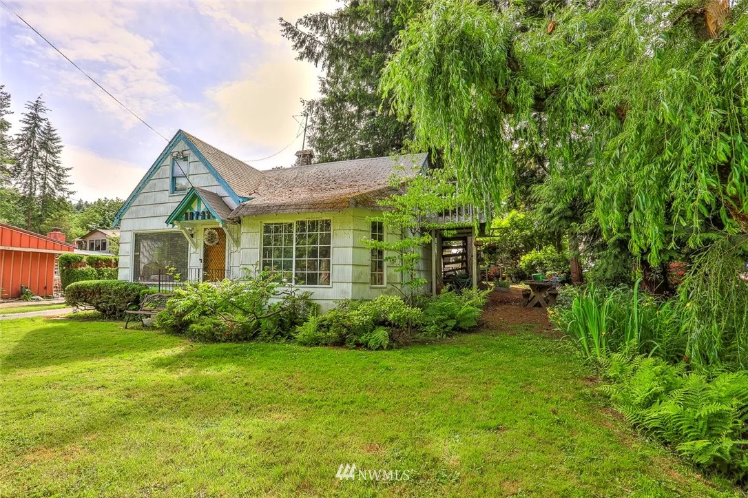 Amazing opportunity - remodel the quaint storybook cottage or build your dream home. Home is in need of TLC but has 2 bedrooms up, large dining room with bay window, wood fireplace and some newer windows. The lot is incredible and very deep. There is a small, beautiful stream, fruit trees and garden space. Very sunny lot, over 22,000 sq feet. Plenty of room to build your dream home.