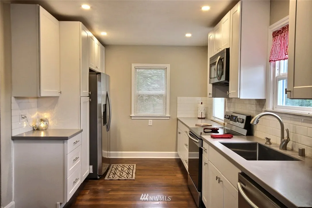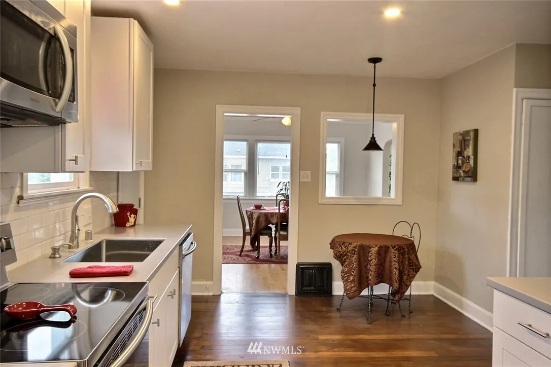 Solid Craftsman w/upgrades! All new gourmet kitchen w/white cabinetry, quartz counters, lighting, subway tile backsplash, new SS appliances incl microwave & fridge; living rm w/brick gas FP, ceiling fan, crown molding; sizable master bedrm; 5-piece bath up w/custom tile surround & new glass shower doors & all new cabinet, toilet, sink, lighting & tile floor; updated 1/2 bath; new roof & gas furnace; vinyl windows; hardwood floors/new lighting thru-out; full height basement-finish to BNB or apt?
