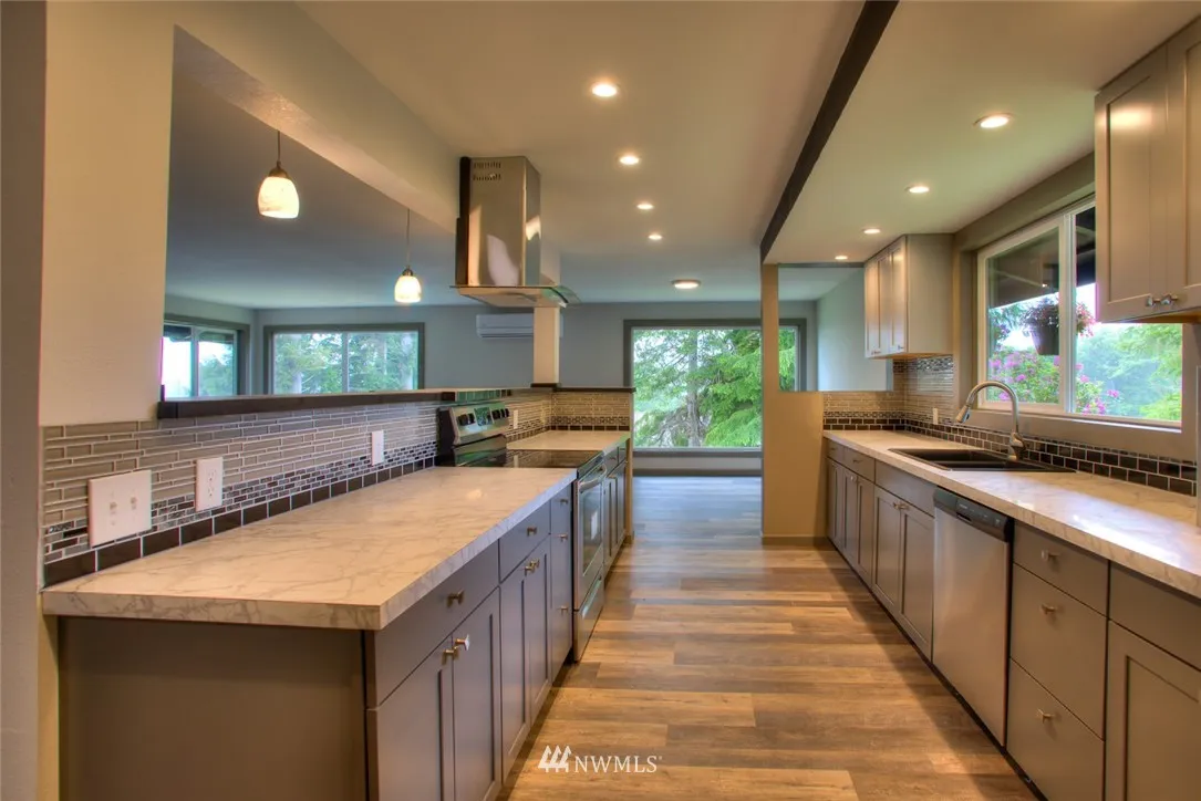 SPECTACULAR!!!Home is completely refurbished; total paint in and out, new laminate, new carpet, complete kitchen remodel to include all new stainless appliances, ductless heat pumps, upper & lower, the bathroom will dazzel, and all vinyl windows. Master bedroom is over the top, 2 beds up, 3 down. Entertain on the grand patio, great room with kitchen, bar and fireplace. To much to list. Harbor views. Buyer to verify all information to own satisfaction.