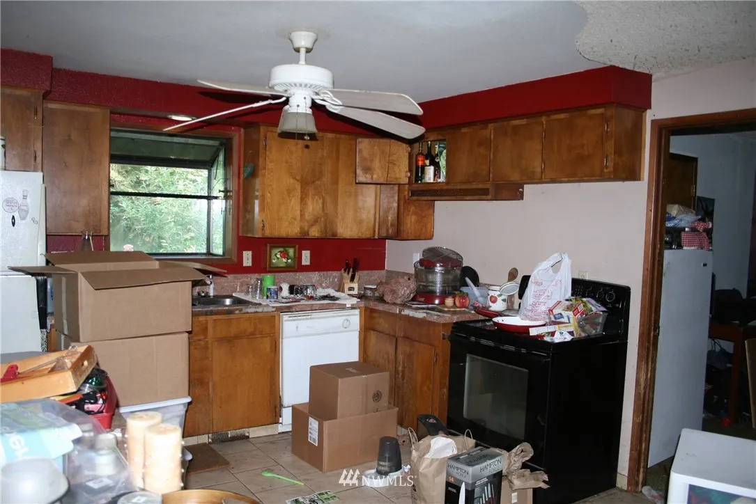 Ranch fixer on 5.5 acres in Amboy. Living room, family room, den, kitchen with separate dining, two bedrooms, full and half baths, storage room. Family room with brick surround wood insert and built-ins. Kitchen with electric range, dishwasher, refrigerator and separate dining area. Two bedrooms, one with double closets. Full bath with combo soak tub and shower, built-ins. Large storage room. Lots of potential – As Is. Make this yours!
