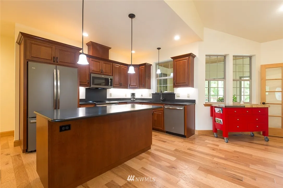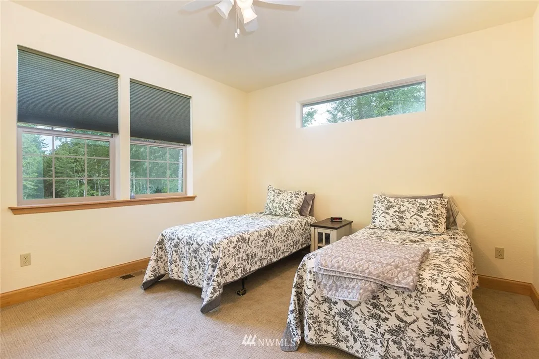 Beautiful custom home just minutes from Sequim. The peaceful setting is located across from John Wayne Marina, minutes from the Dungeness Trail. The 1.9 acres has it's own meadow & ample room for a guest cottage. The home features engineered hardwood & vinyl ceramic tile floors, all wood cabinets, solid Hemlock wood doors & trim. Built in desk, cabinets & Murphy bed in the study & hutch in dining area. Lopi wood burning stove. Honed granite counters, GE Profile appliances. Sunroom accesses deck.