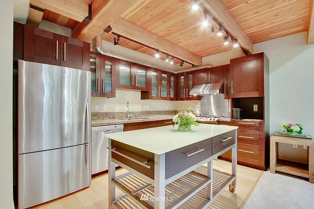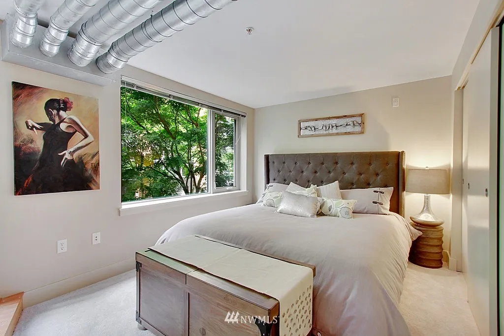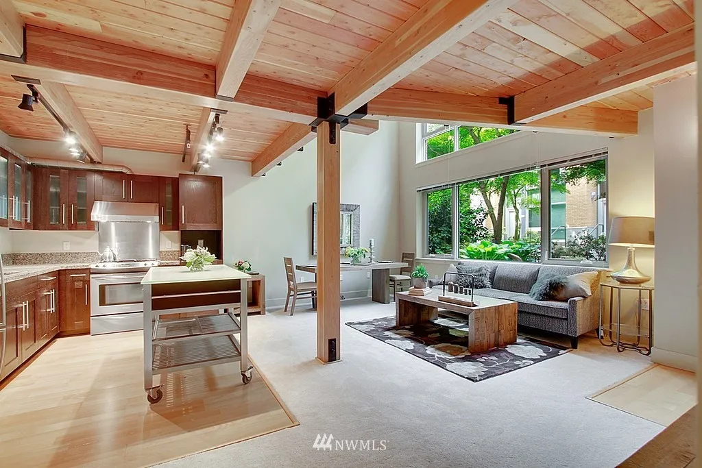 Welcome to Capitol Hill and this 913 sqft, Loft-Style, 1 Bedroom/1.5 Bath Condo at The Brix. This home features a contemporary, open floor plan with exposed beams and Northwest finishes. Entertainers kitchen with stainless appliances, gas stove and wall of windows. This unit faces the courtyard and has a nice patio space. Rooftop deck common area features city views, bbqs and herb garden. One assigned parking space plus storage. Do come see!