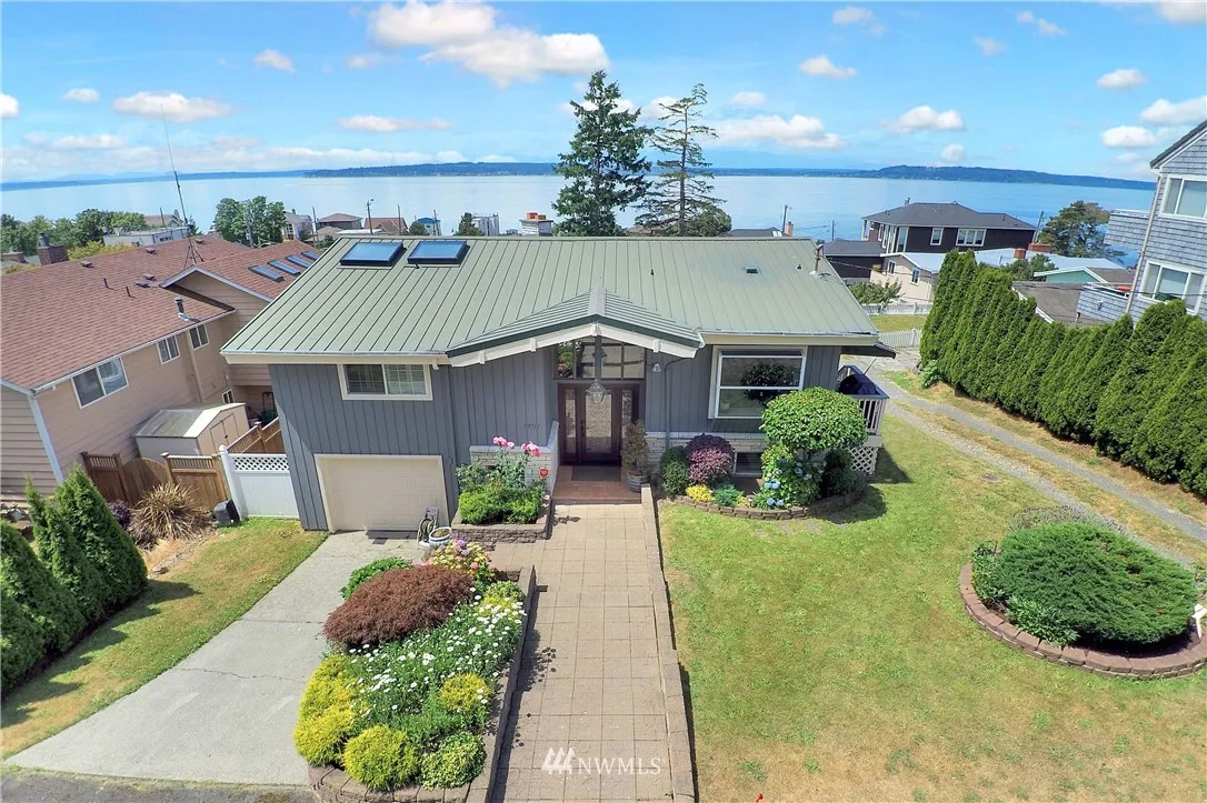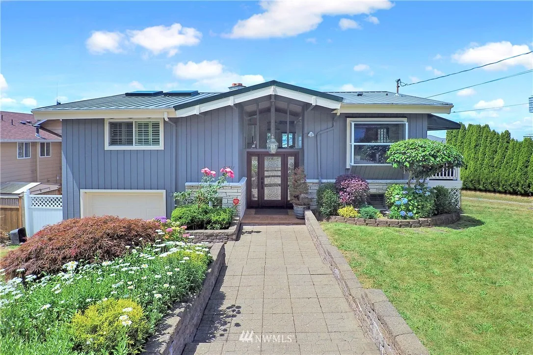 Breath taking views of the Olympic Mts. & Puget Sound in Richmond Beach! This 4 bd 3 bath sits perfectly near 3 parks and 2 blocks away from the shore. Wake up in the master bedroom to views of the water. Hardwood floor & tile throughout. Kitchen feats. stainless appliances & granite counters w/ natural light filling the home. Entertain on the large scenic balcony w/ plenty of parking. 1 year old exterior paint & landscaped entrance. This mid-century dream home is one of a kind!