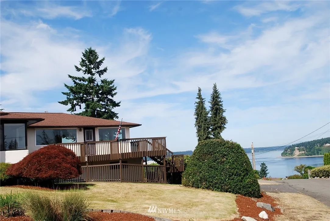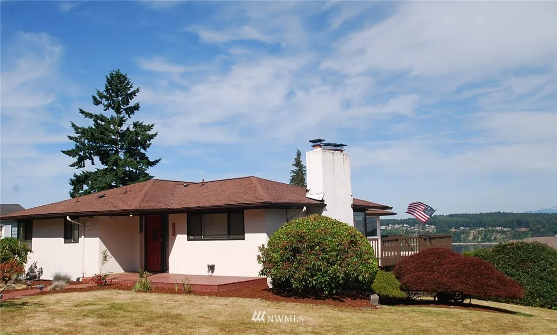 Incredible views of Puget Sound, Fox Island & Olympic Mountains from almost every room in this mid century home! Hardwood floors throughout the main floor except part of the living room features carpet. Downstairs is a full apartment w/family room, full kitchen, 3/4 bath, and large bedroom. This can be used as part of the house or a separate living space. Wrap around deck offers beautiful views ! Home features a western exposure & short walks to Chambers Bay Gold Course & Soundview Trails.