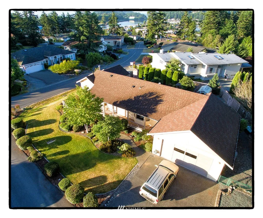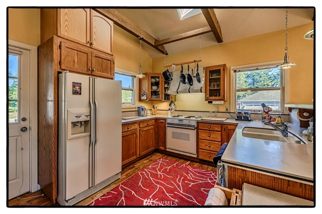 Enjoy an abundance of natural sunlight filtering through the massive windows & skylights of your custom built rambler w/exposed beams solid oak hardwood flooring & architecturally pleasing clearstory ceilings. Entertain friends in the great room with two fireplaces, or enjoy meals on the sunny deck off the kitchen or main deck with the southern exposure. Greenhouse; raised flower beds; fully fenced back yard; gazebo; Shop; separate utility room; sewing room; den; moorage, and swimming pools.