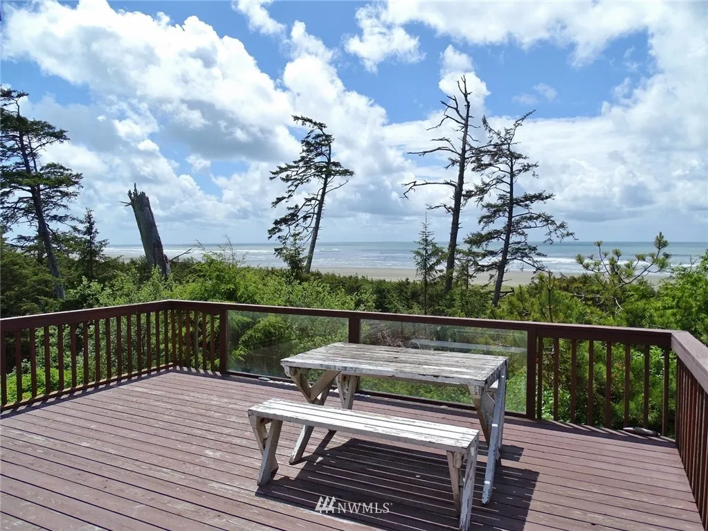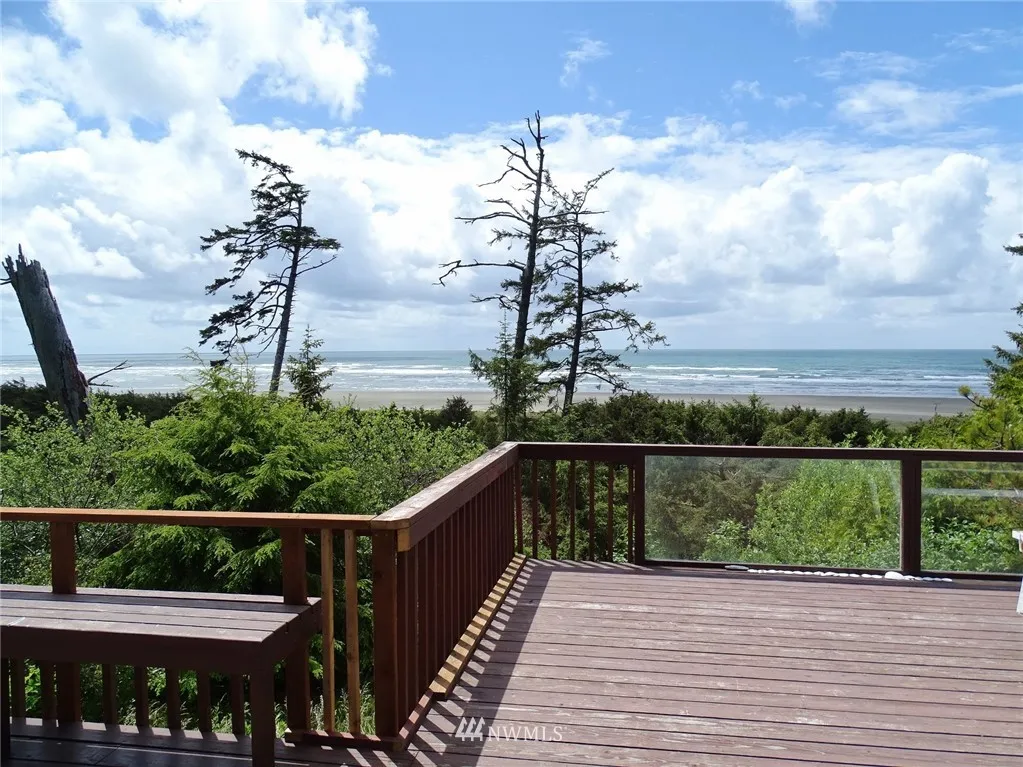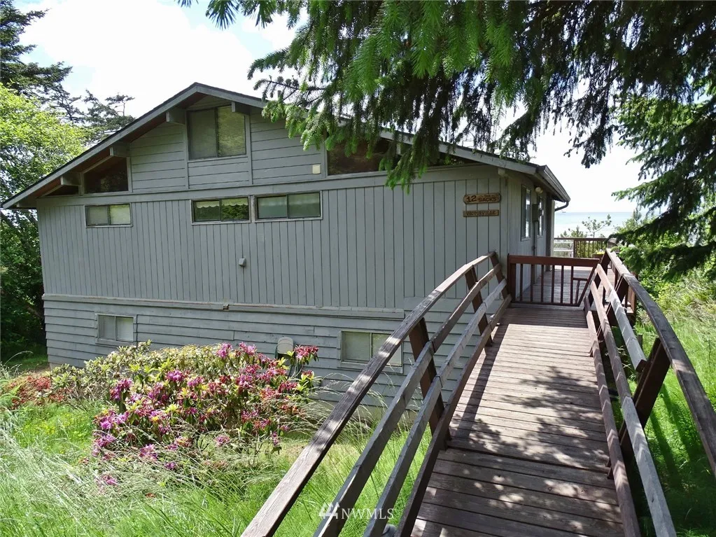 Home w/ STUNNING OCEAN VIEWS in the peaceful, beautiful ambiance of the North Beach area nestled in the trees in this private subdivision of Copalis Rocks. Featuring a large Deck w/ gorgeous Ocean Views leading into the main living area of the home, which has the Great Room, Vaulted Wood Ceilings, Free-standing Wood Fireplace, 2 BD, 1 BA, Laundry Room, and a small Loft. The Downstairs features a Game Room, 2 Bonus Rooms used as Bedrooms, 3/4-BA & Shop/Tool Room. About 1.2ac. 2nd parcel included.