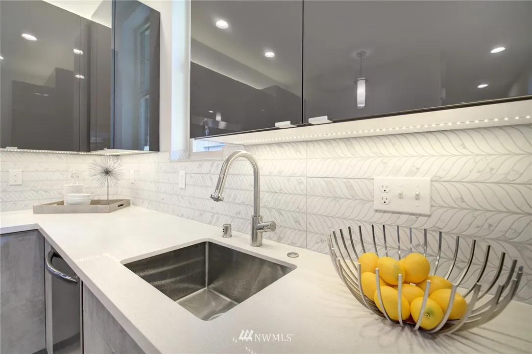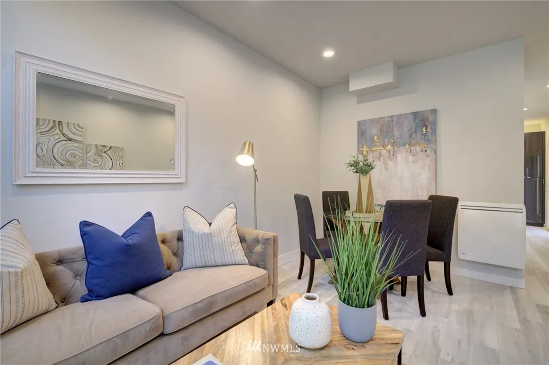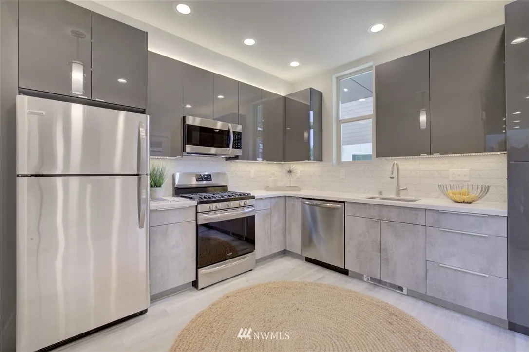 Sophisticated, light filled & definitely has the cool factor. Two amazing entertainment view rooftop decks. Gorgeous master suite with king size bedroom, Minisplit, walk-in closet, double shower w/rain shower, heated floors & double vanity. Chefs kitchen w/gas stove and stainless appliances w/rear door to off street parking. The entry level feature tile floors, dining rm and kitchen. The second level has a family/tv room, bedroom and full bath. No home owner dues.